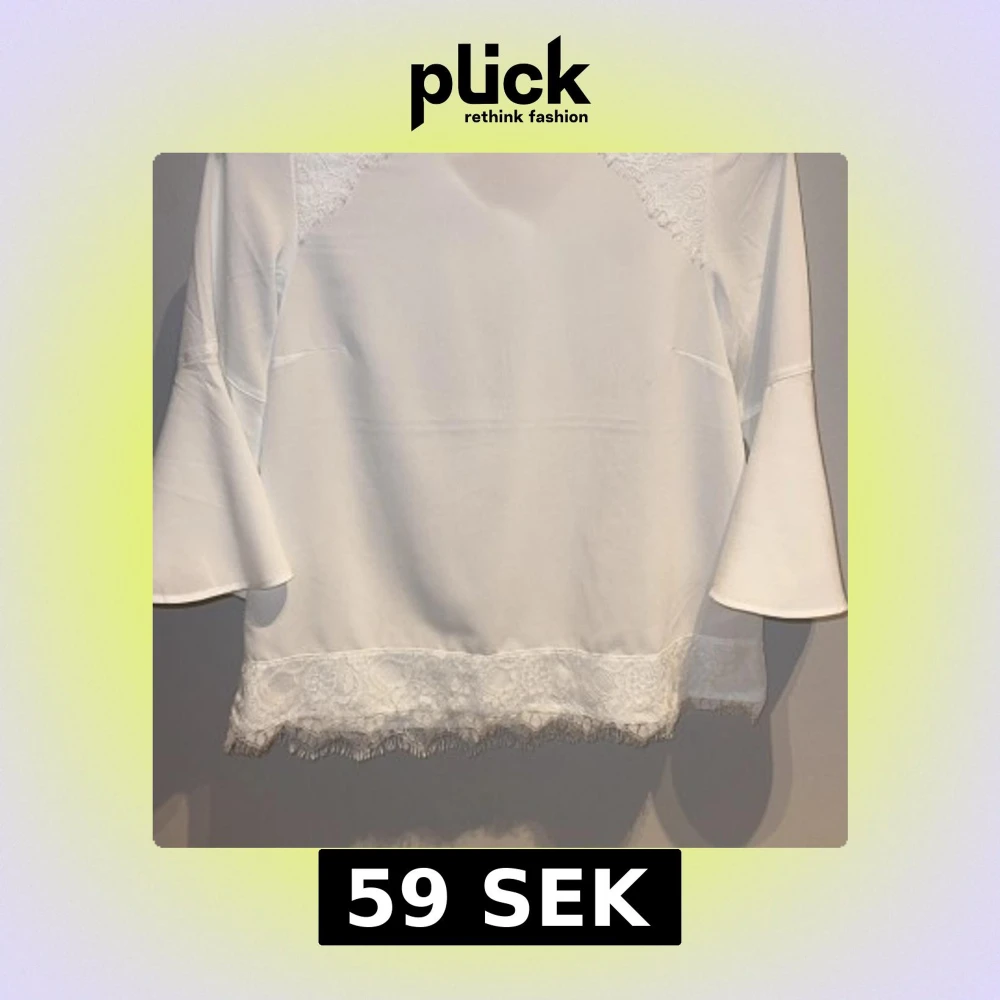 Supersöt vit blus från Lindex med breda trekvartsärmar och fina spetsdetaljer vid axlar och nederkant. Blusen har en lätt A-linjeform och knäppning i nacken. Perfekt för dig som gillar en stilren look. Säljer för den inte kom till andvändning