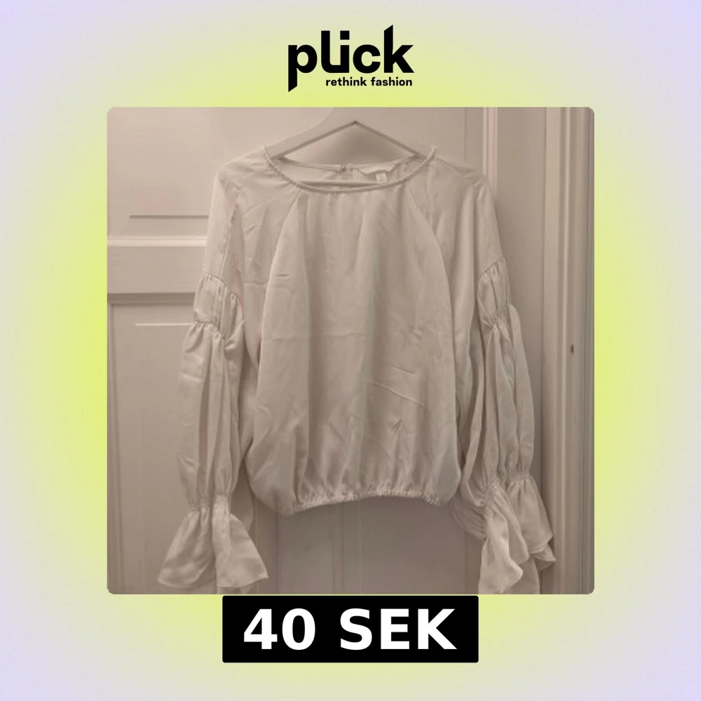 Fin blus med utställda ärmar. Vit och klädd knapp i nacken.