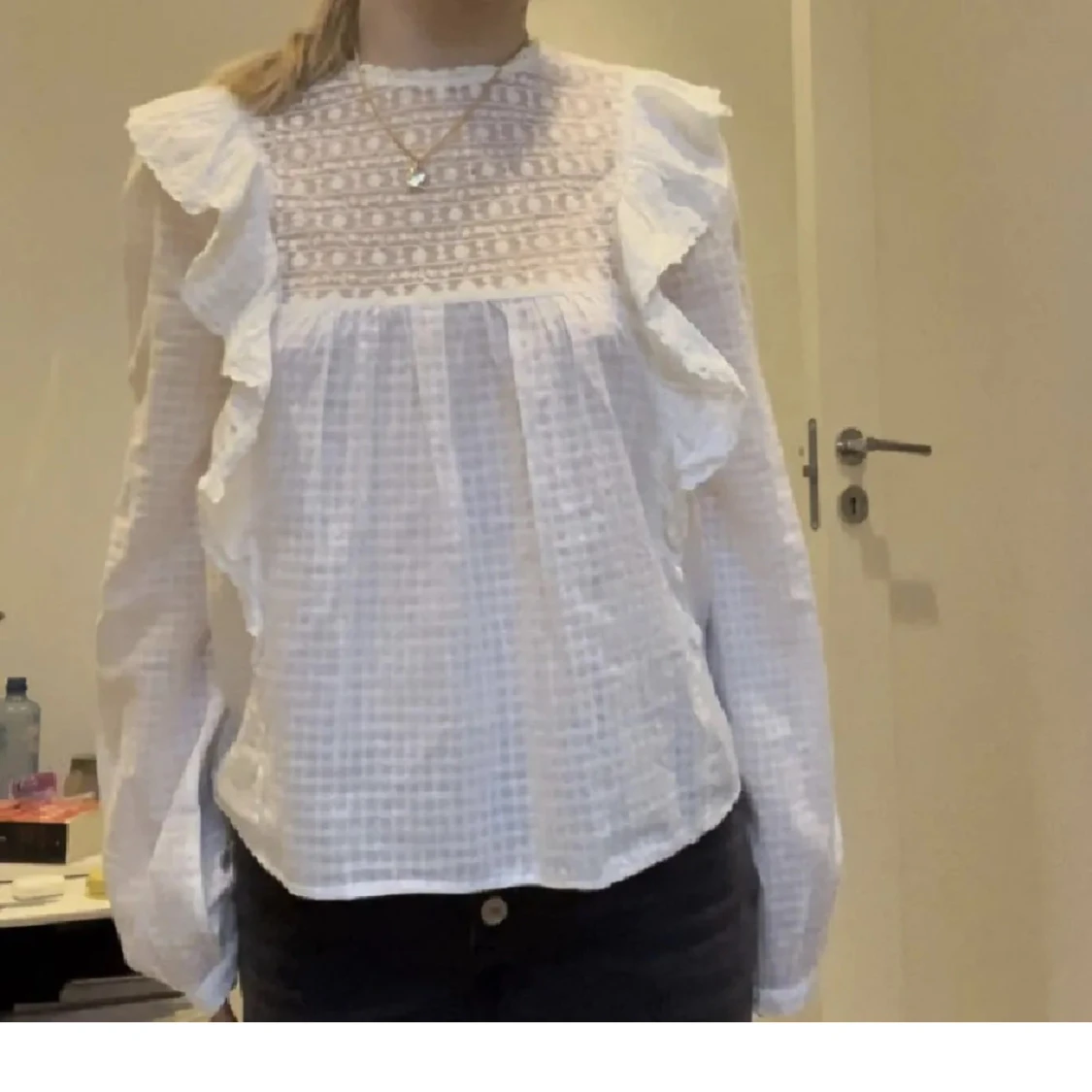 Säljer denna fina blus med volanger ifrån Zara. (Första bilderna är lånade). Plagget är nästan aldrig använt och i ett väldigt fint skick.