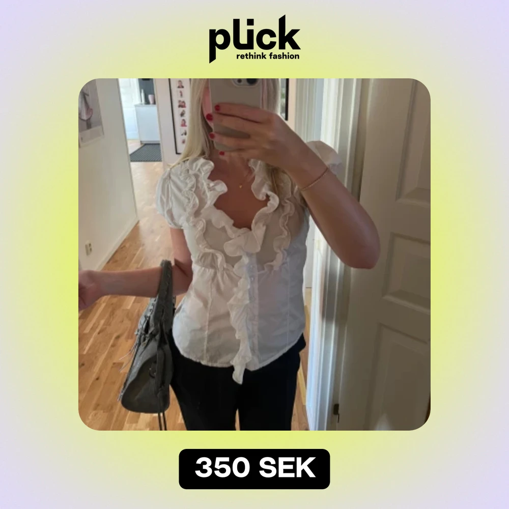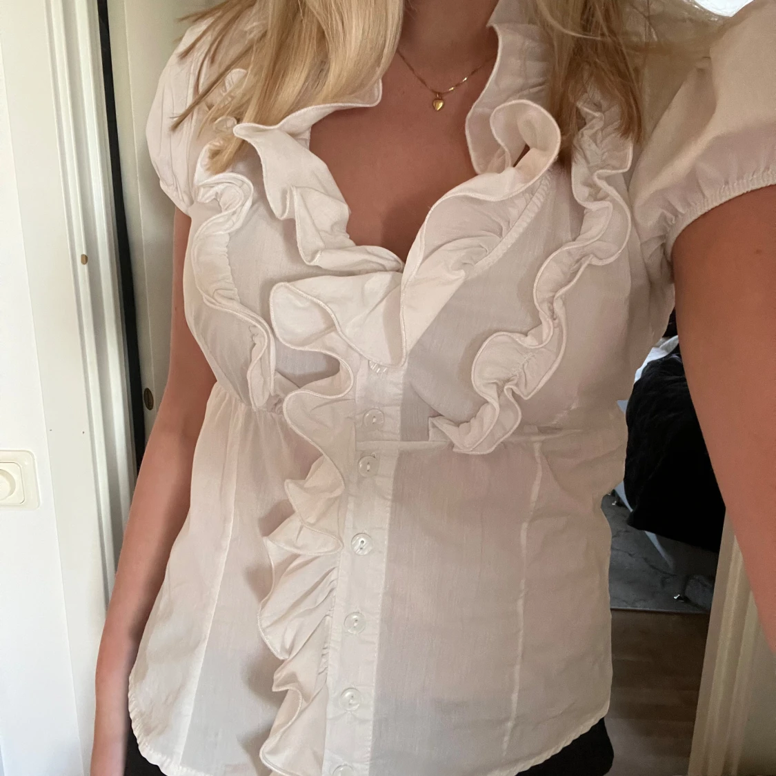Så fin kortärmad vit blus med volanger 🩷 Formar kroppen så fint!