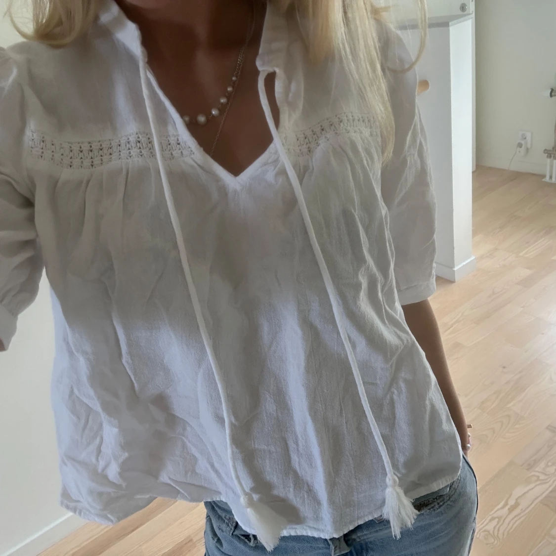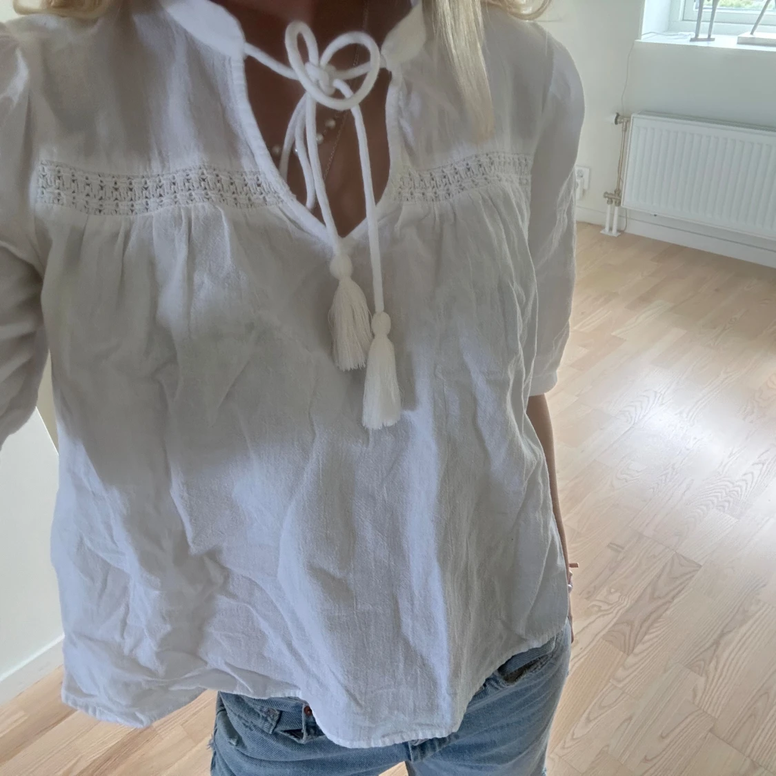 Vit blus från vero Moda i storlek s. Lite skrynklig på grund av att jag ej strykt den men kan stryka innan den skickas om de önskas🥰!