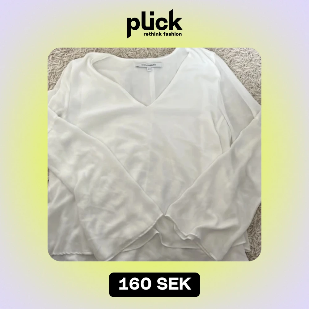 Vit polyester blus i jättebra skick. Armarna är lite genomskinliga (bild 4) men i övrigt finns det ett undertyg. Liten i storleken. Skriv vid funderingar💘