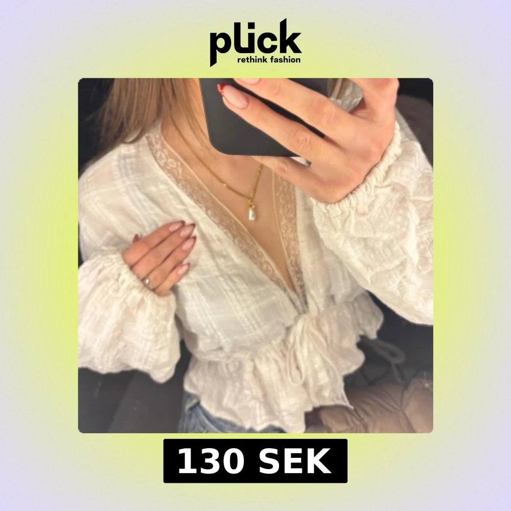 Jätte fin vit blus med spets detaljer! Använd en gång! I fick skick💕