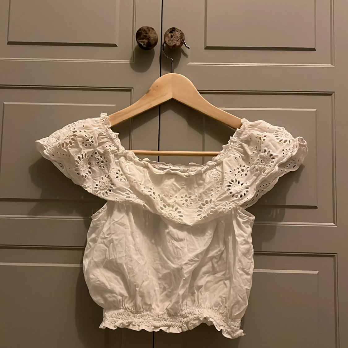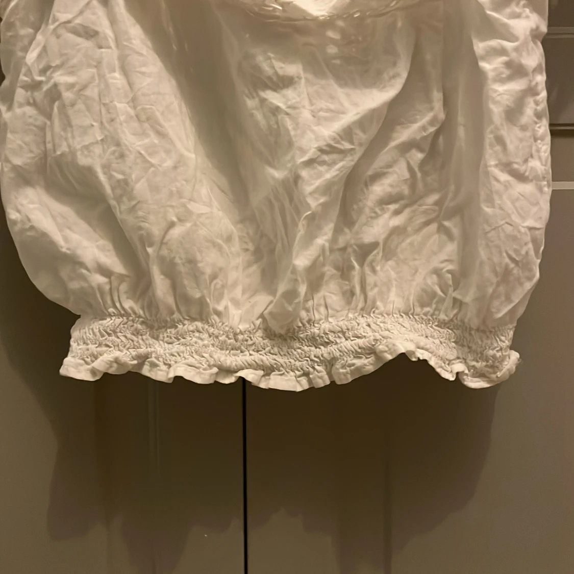 Vit blus från Kappahl storlek 152. Blusen går att ha över axlarna och sedan att vika ner till axlarna.