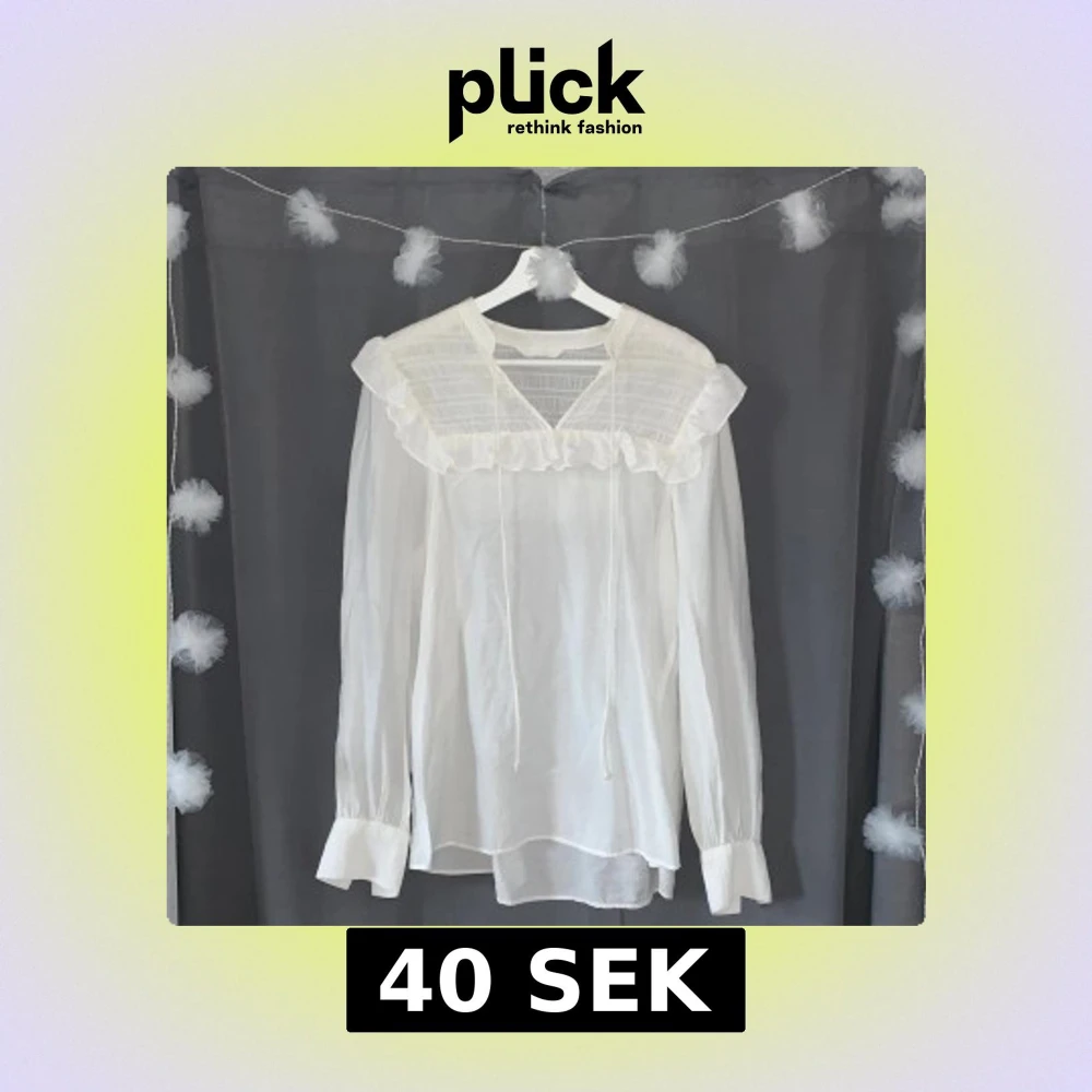 En supersöt vit blus från H&M🤍Storlekslappen är borta men skulle säga att den är i storlek M, knappt använd.