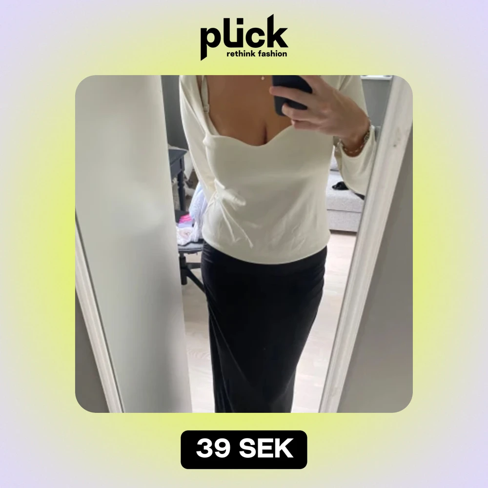 Vit topp från H&M med ”Uringad” stil. Lite tjockare i materialet. I storkek L men skulle säga att den sitter bra på en M också. Har du fler frågor så skriv.