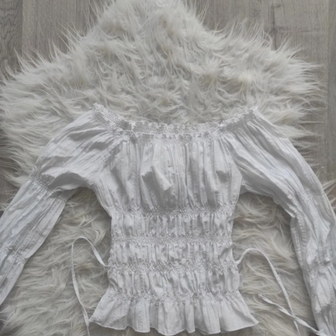 Super snygg vit topp med skrunch eller inväckningar på sig🤗