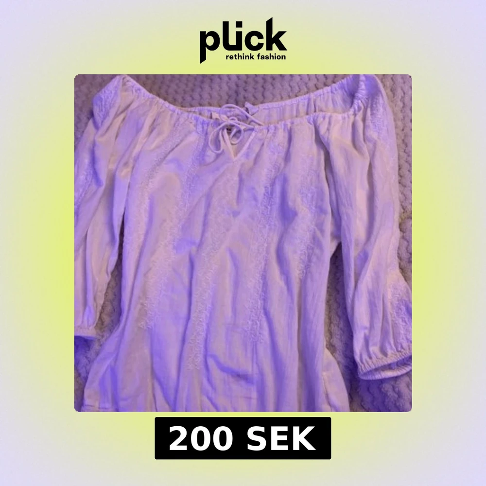 Säljer en vit offshoulder blus från L.O.G.G. H&M i bomull med broderade detaljer. Blusen har trekvartsärm, knytning fram och smock vid ärmslut. Perfekt för vår och sommar! En sminkfläck fram som syns men om någon är intresserad kan jag fixa bort den🥰