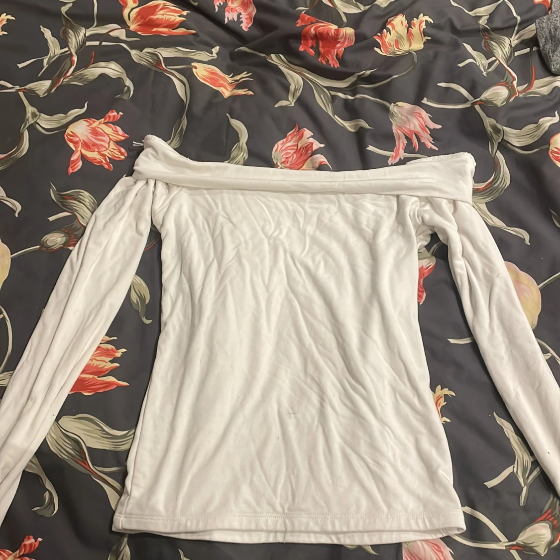 Säljer en vit långärmad topp med offshoulder-design. Toppen har en smickrande, tight passform och är tillverkad i mjukt bomullsmaterial. Perfekt för dig som gillar stilrena och enkla plagg med en modern touch.