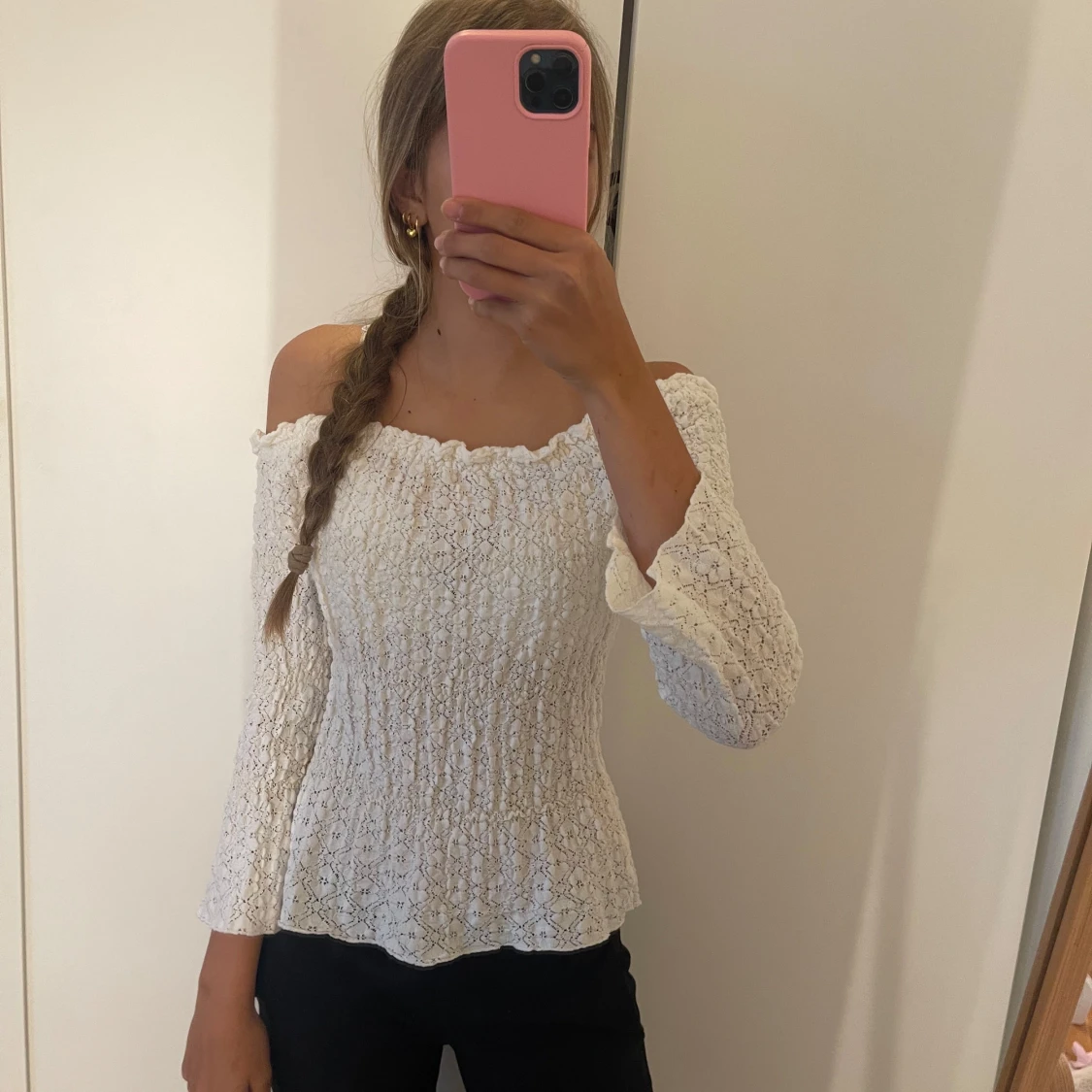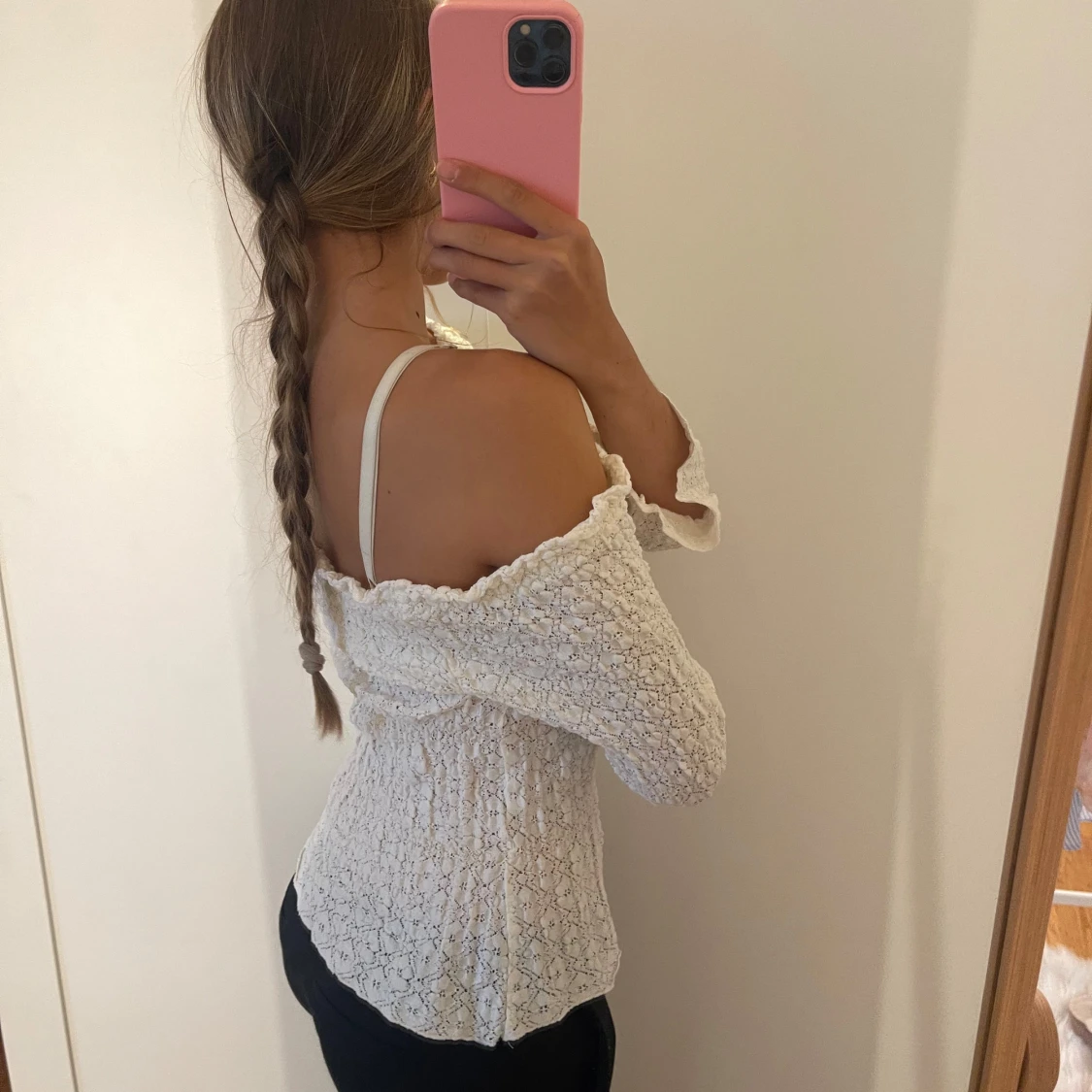Superfin vit blus från Gina Tricot, Perfekt för en söt och trendig look.🥰🥰Storleken passar både S och M