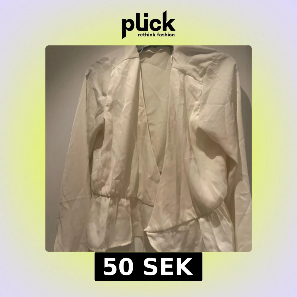 Säljer en stilren vit omlottblus från BikBok i storlek M. Blusen har långa ärmar, knytband i midjan och lätt glansigt material som ger en lyxig känsla. Perfekt för dig som gillar en feminin och trendig look.