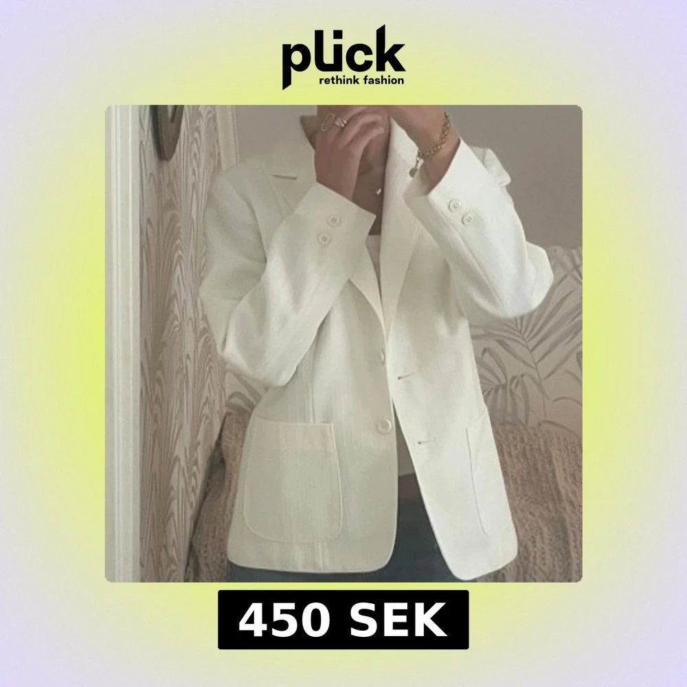 Säljer en supersnygg vintage vit kavaj med subtila ränder. Den passar till allt är lätt att styla! Är perfekt oversized på mig som är xs-s❣️