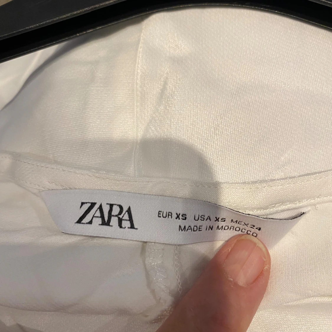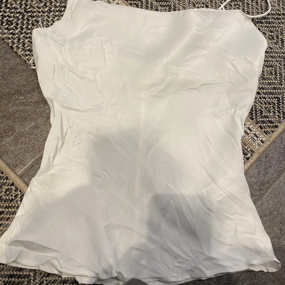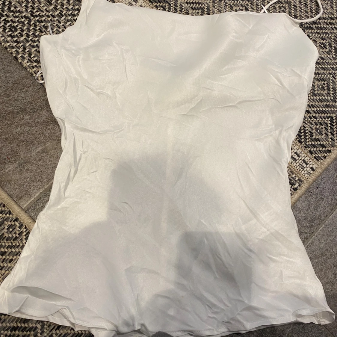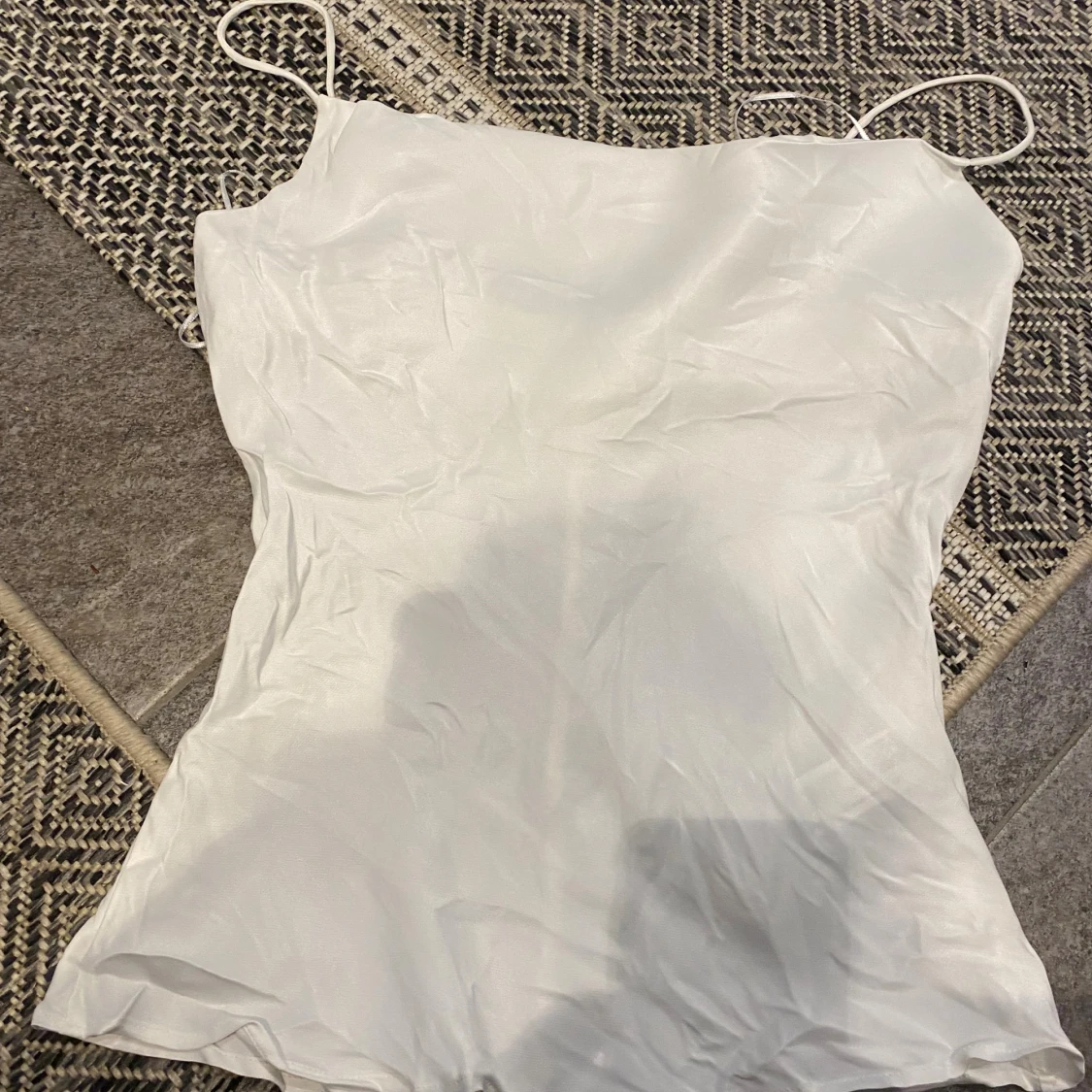 Säljer en vit Linni från Zara i storlek XS. har tunna axelband och en snygg draperad halsringning. Materialet är glansigt satin som ger en lyxig känsla. Perfekt för dig som gillar minimalistisk och stilren design.