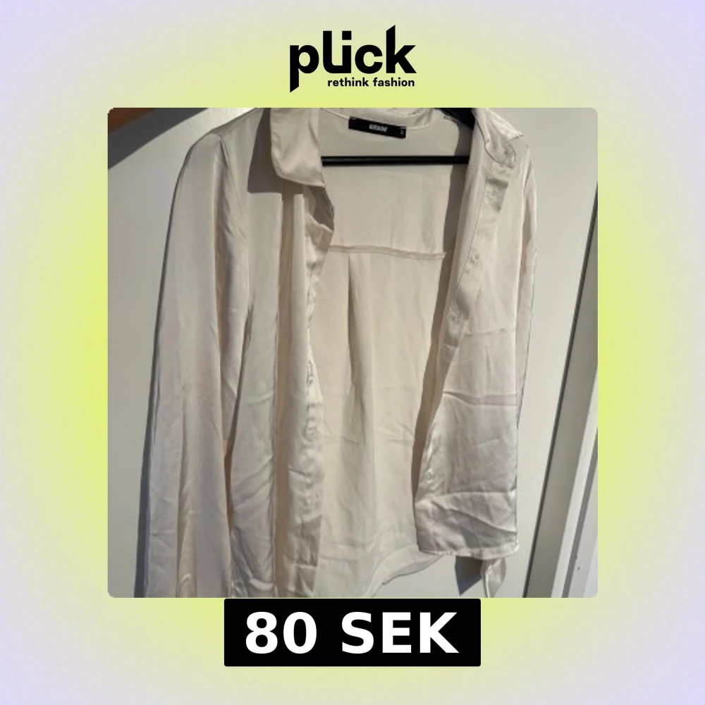 Säljer en stilren creme vit blus från Bik Bok i glansigt satinmaterial. Skjortan har klassisk krage, långa ärmar med manschett och knappar framtill. Perfekt att styla till olika looks! (Aldrig använd, kommer tyvärr inte till användning)