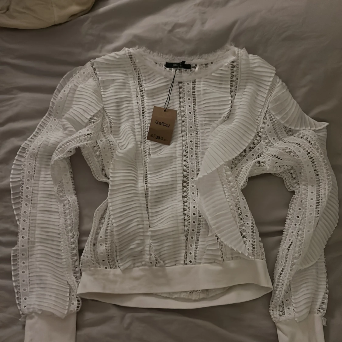 Säljer en superfin vit blus från Soyaconcept i nytt skick. Den har långa ärmar och är täckt med vacker spets och volanger. Perfekt för vår och sommar, och funkar både till vardags och fest. Storlek S. 🌸