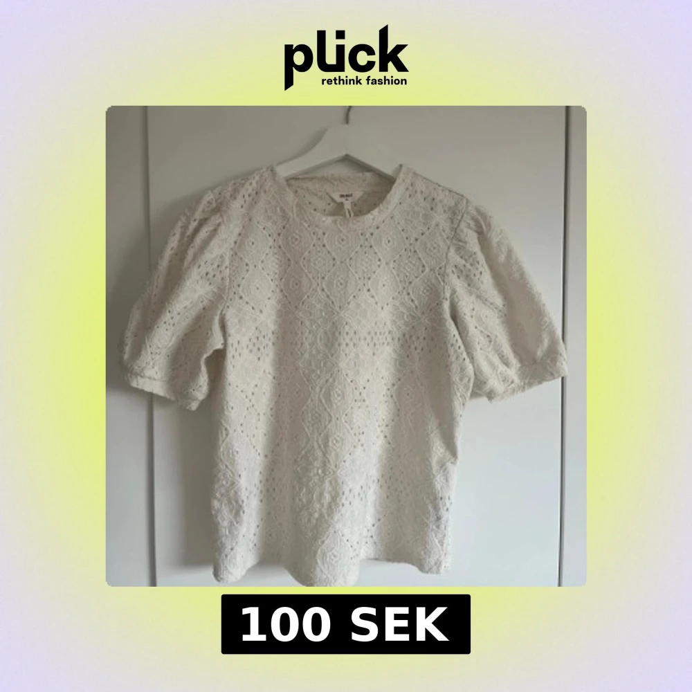 Superfin vit blus från Object med korta puffärmar och vackert broderat spetsmönster. Storlek S/xs