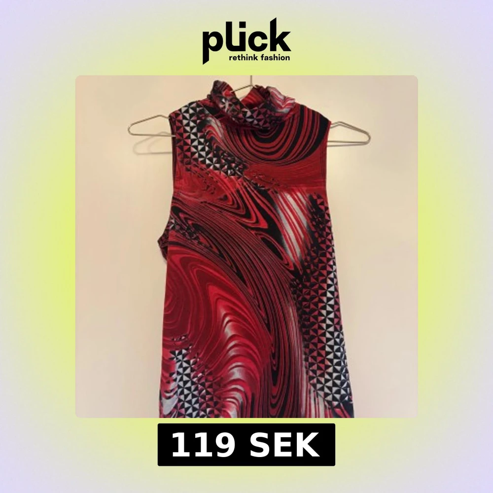 Säljer en ärmlös topp med hög krage och ett unikt abstrakt mönster i rött, svart och vitt. Toppen har en figurnära passform och coola geometriska detaljer som ger en modern vibe. Perfekt för dig som vill sticka ut med färg och mönster.