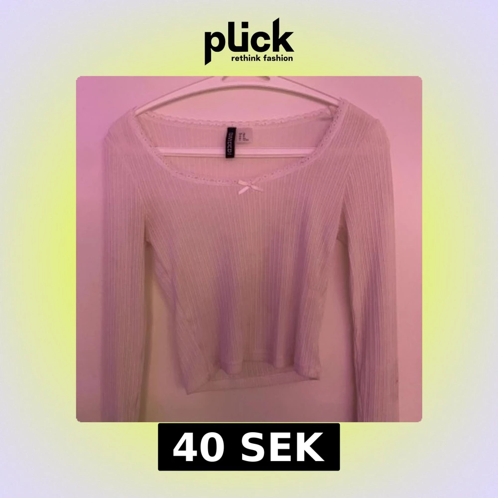 Säljer en söt vit ribbad topp från newyorker. Toppen har långa ärmar och en liten rosett framtill. Den är dekorerad med spetsdetaljer vid halsringningen. Perfekt för en stilren look. Finns dock några små fläckar på men jag tror att de flesta skulle gå bort i tvätten.