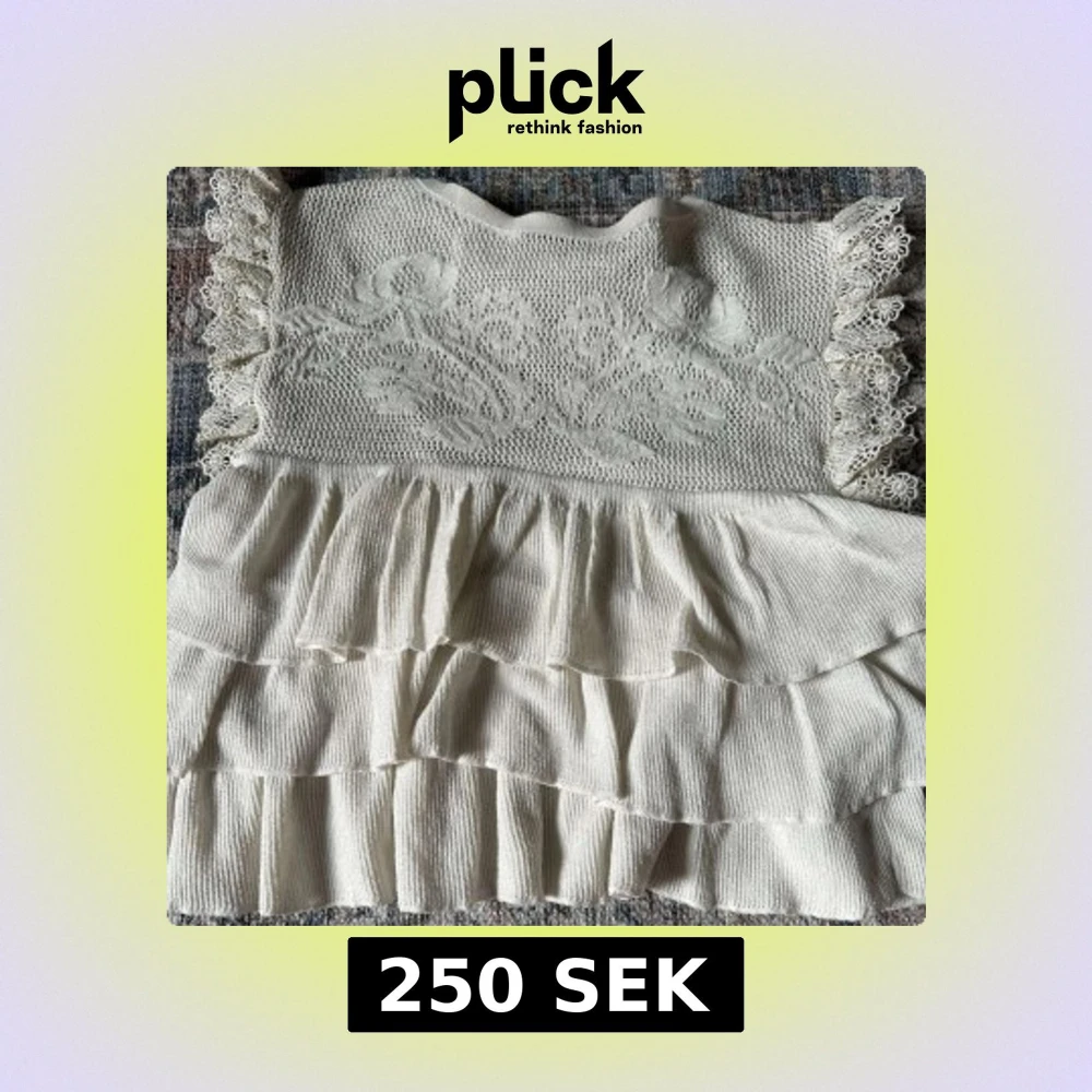 Charmig vit topp med vackra spetsdetaljer och volanger. Ăverdelen har ett broderat blommönster och spetskant vid Ă€rmarna. Perfekt för somriga dagar eller speciella tillfĂ€llen. TvĂ€ttas innan!! storlek S men passar ocksĂ„ XSđșđ€ïž