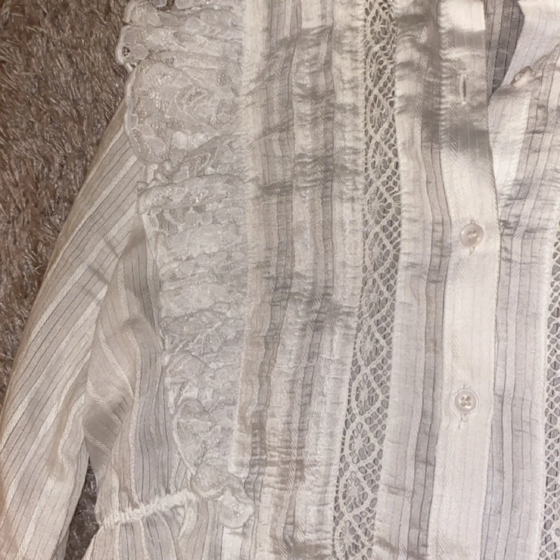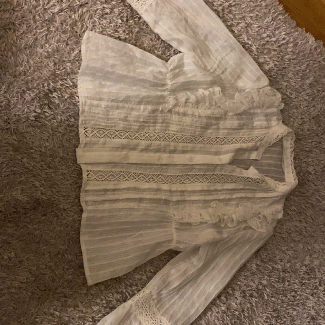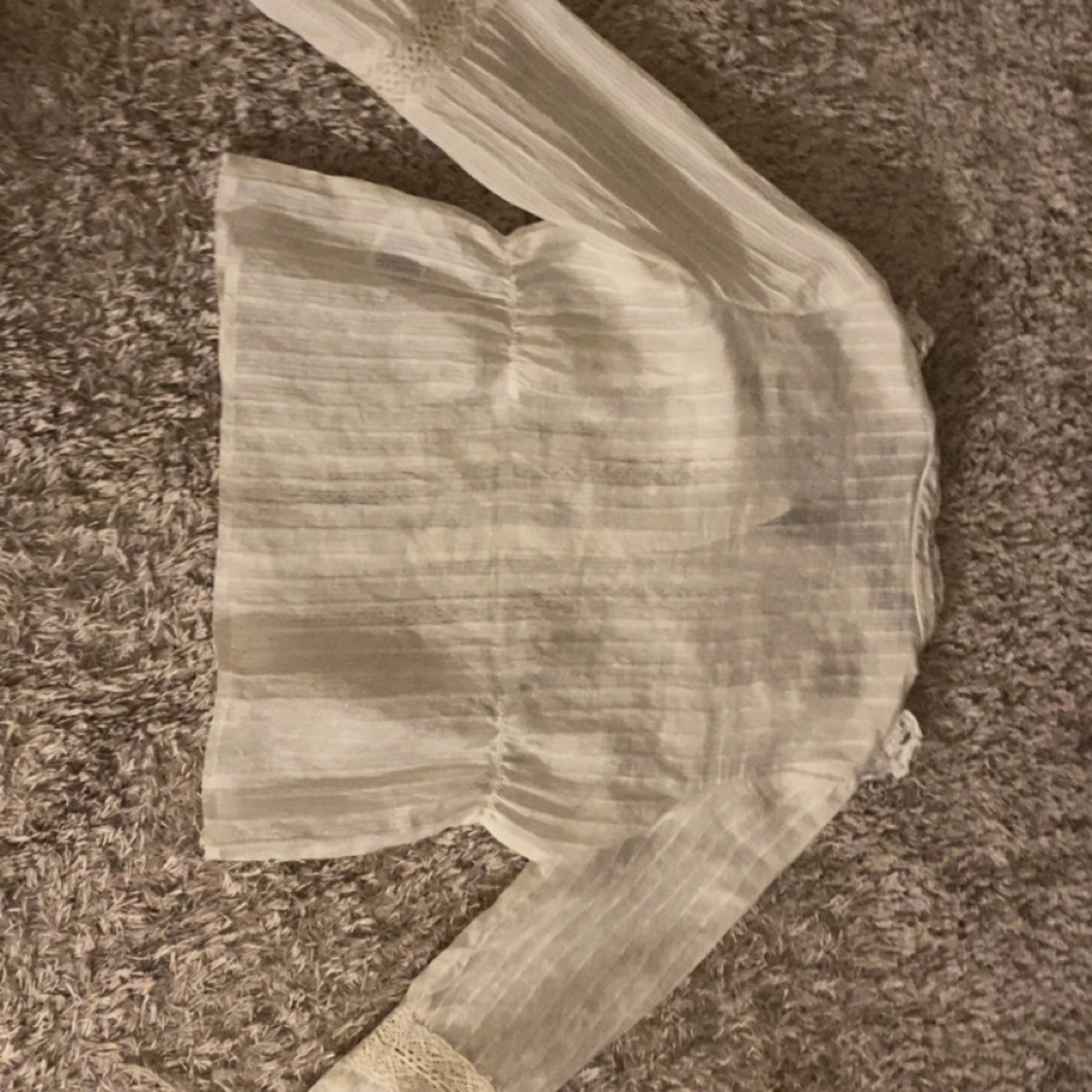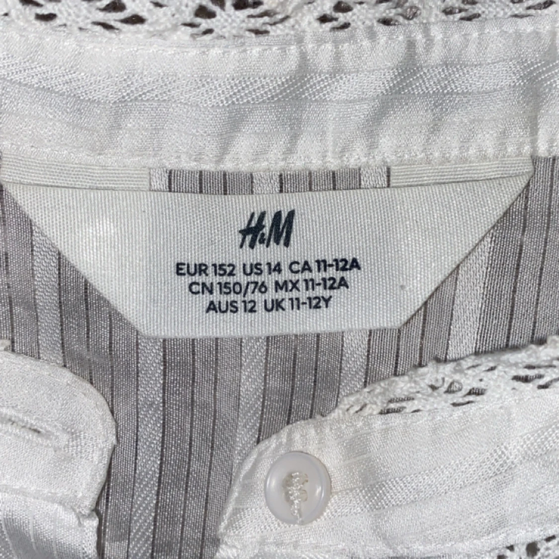 Det står att blusen är i storlek 152 men jag är ca 160 cm lång och den funkar hur bra som helst. Jag ändade den en gång för ett år sen på skolavslutningen, jätte fin blus men jag har vuxit ifrån den tyvärr 💕