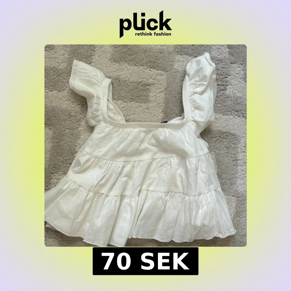 Supersöt vit blus med breda volangärmar och flera lager volanger nedtill. 🥰