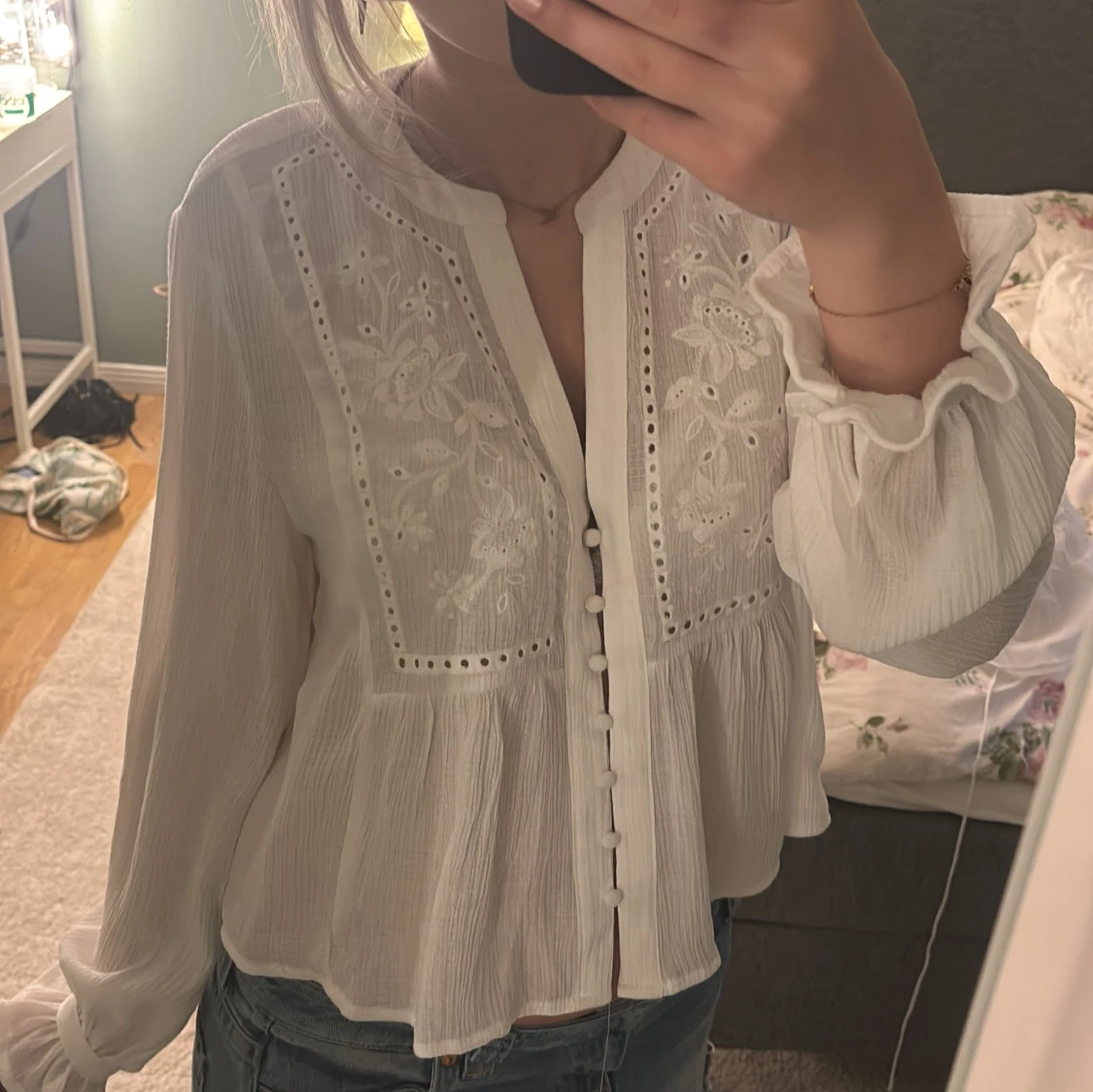 Säljer denna fina vita Zara blusen då den inte kommer till användning. Aldrig använd, prislappen sitter fortfarande kvar.💕