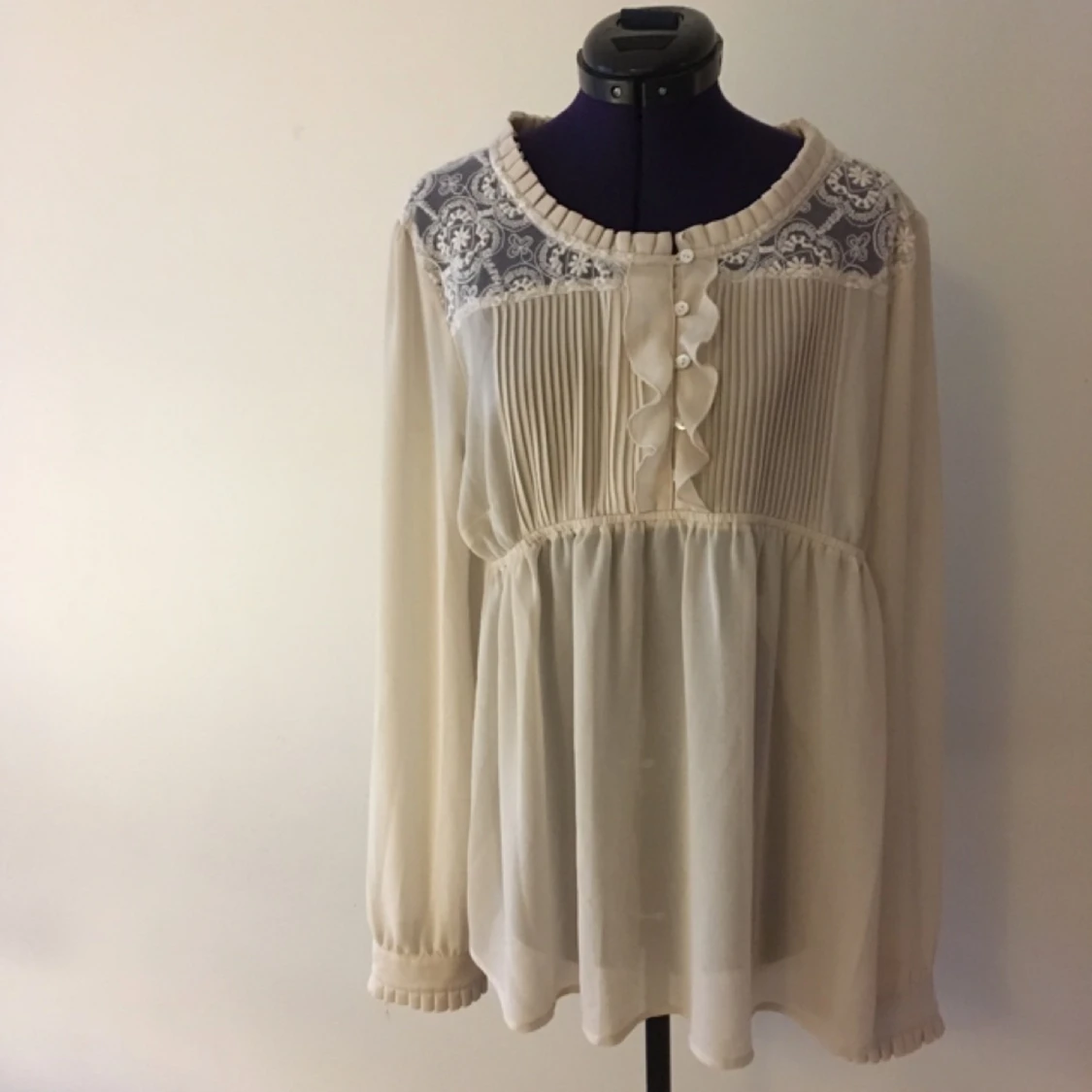 naturvit, transparent blus med vackra detaljer (bl.a. pärlemorknappar). kostade ca 500-700 kr och är precis som ny. egentligen är den för gravida, men jag har använt den trots att jag aldrig varit gravid och det har funkat finfint. passar dig med strl 38-42. kmr lägga upp många annonser närmsta tiden och ju fler plagg du vill ha, desto större mängdrabatt får du. möts upp i sthlm eller skickar om du betalar frakten.