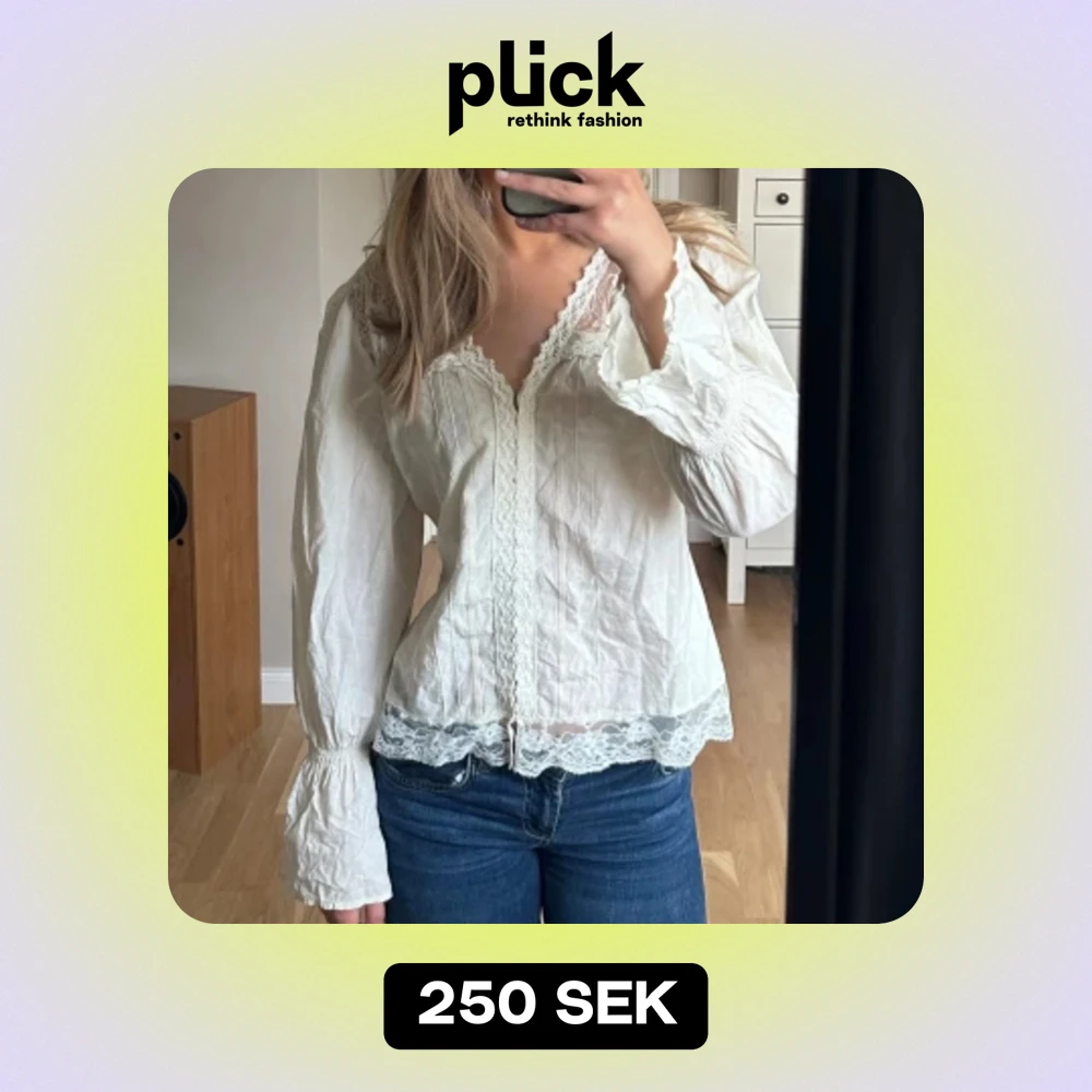 Superfin blus ifrån brooker i strlk 38 men sitter såhär på mig som vanligtvist har xxs-s🩷. Skriv dör fler bilder så löser jag det🫶🏼 Färgen är lite elfenbensvit ish🫶🏼🫶🏼