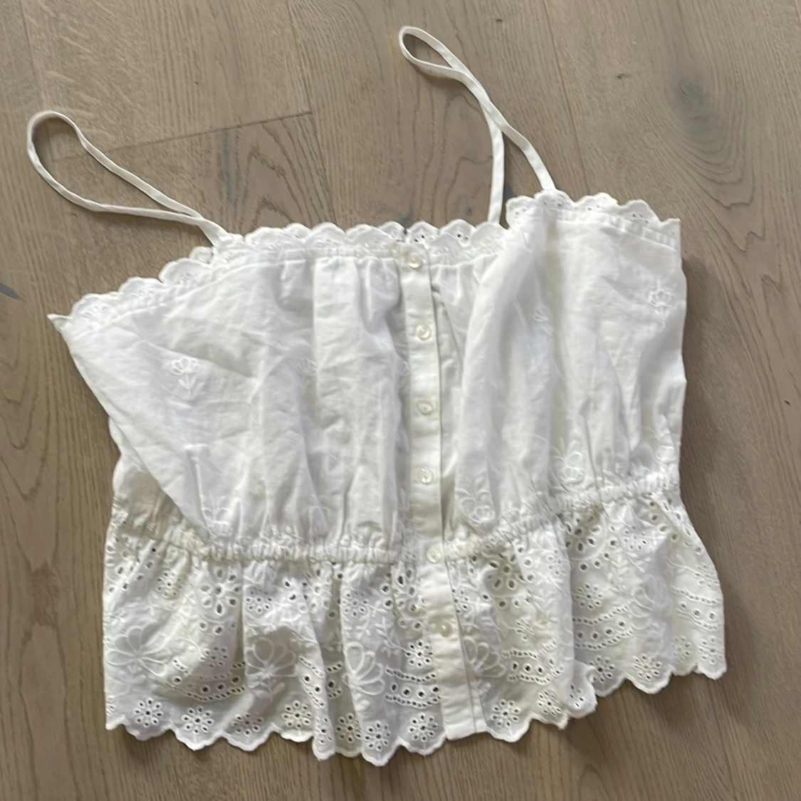 Linne med volanger och knappar