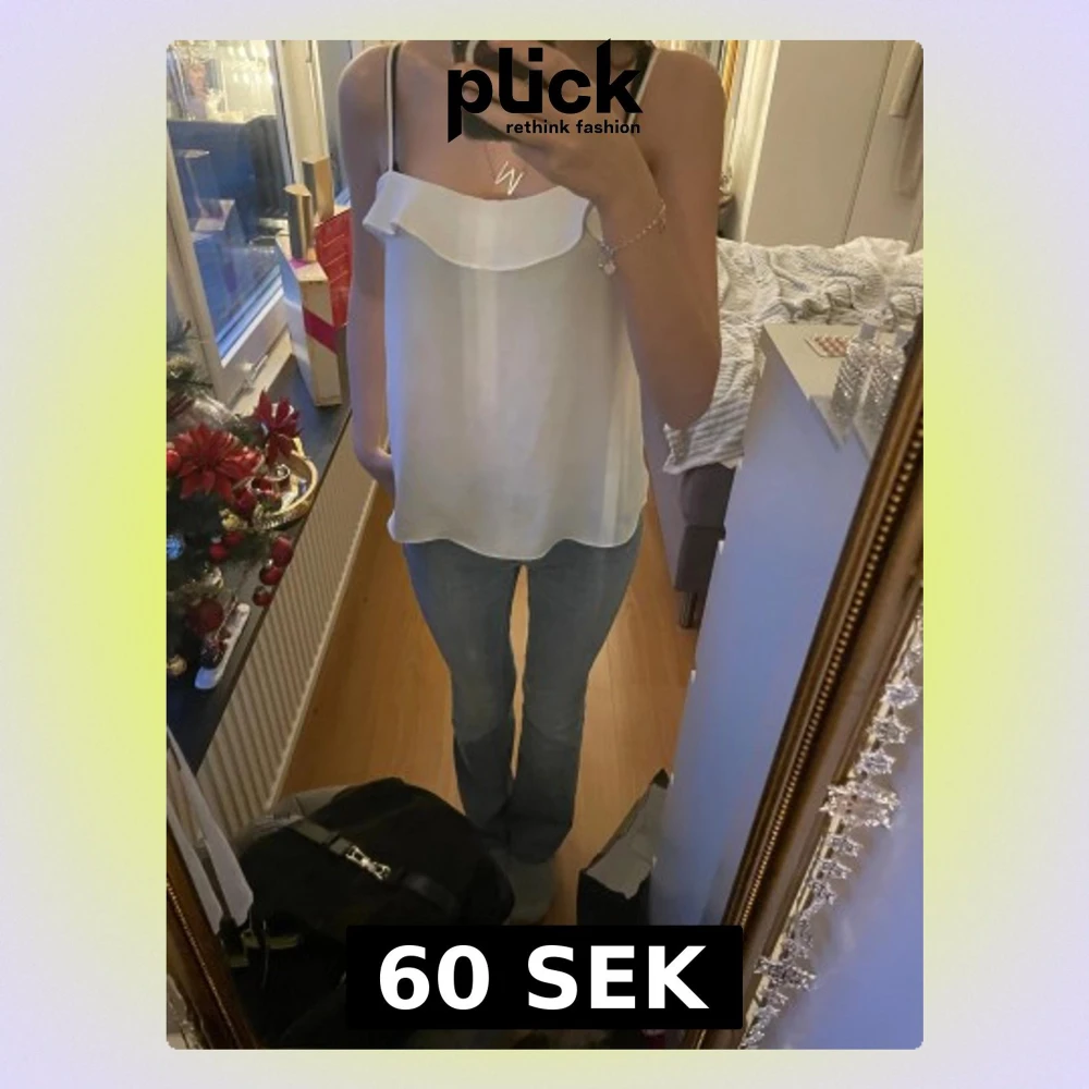 Säljer ett vitt linne från h&m med volang upp till, funkar till allt, basic men ändå lite extra, jätte fin till sommaren, luftig och skön💗