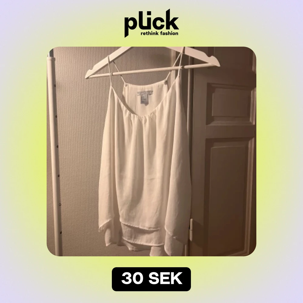 Jättefint vitt linne i något slags finttyg! 💗 Linnet har en fläck på framsidan som tyvärr inte går bort, men det syns knappt när tröjan är på (se sista bild) men linnet har även dubbeltyg (se tredje bild) som blir är en sån fin detalj 💗💓