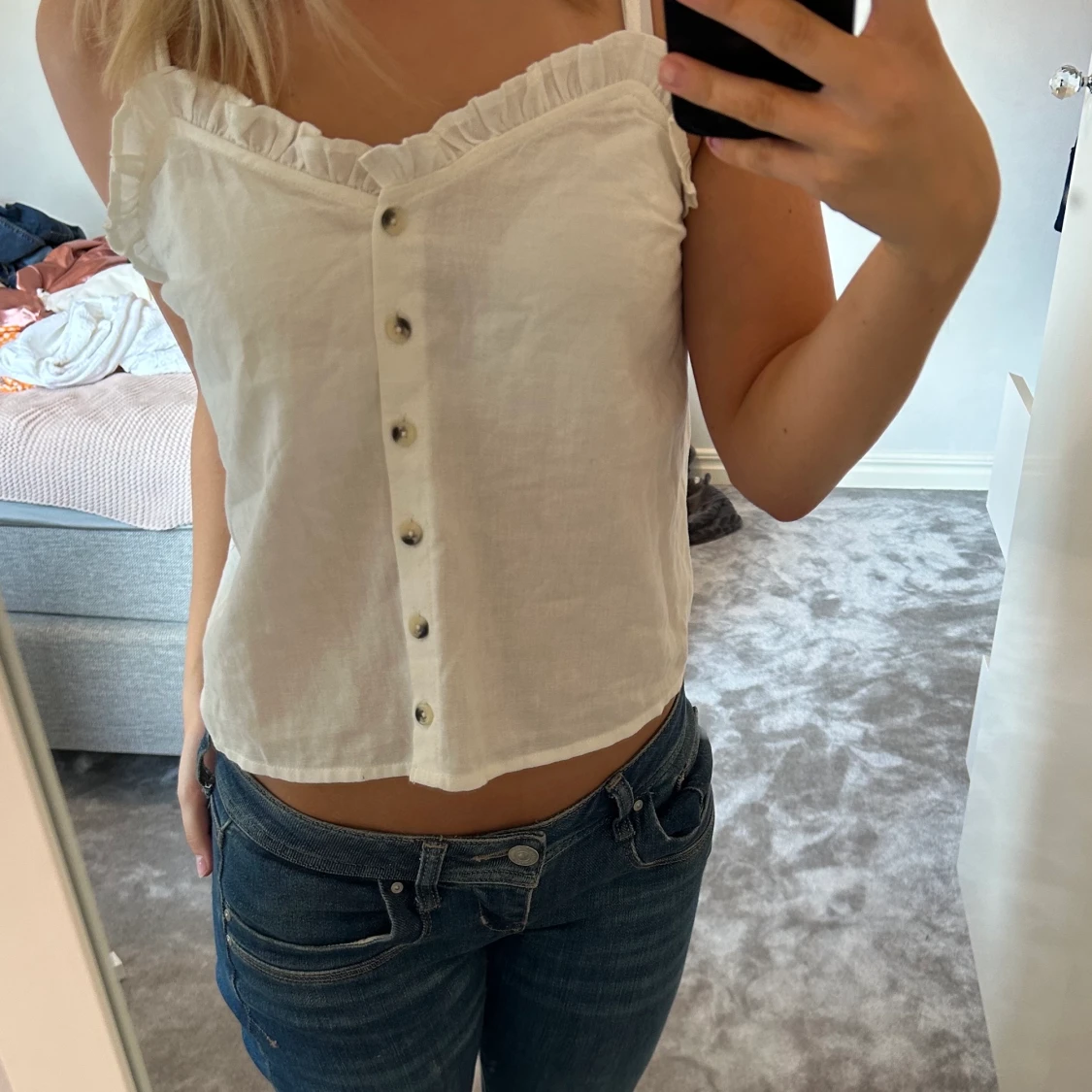 Jättegulligt linne med volanger från asos!🌟 använd fåtal gånger och i superskick, kommer dock aldrig till användning💞
