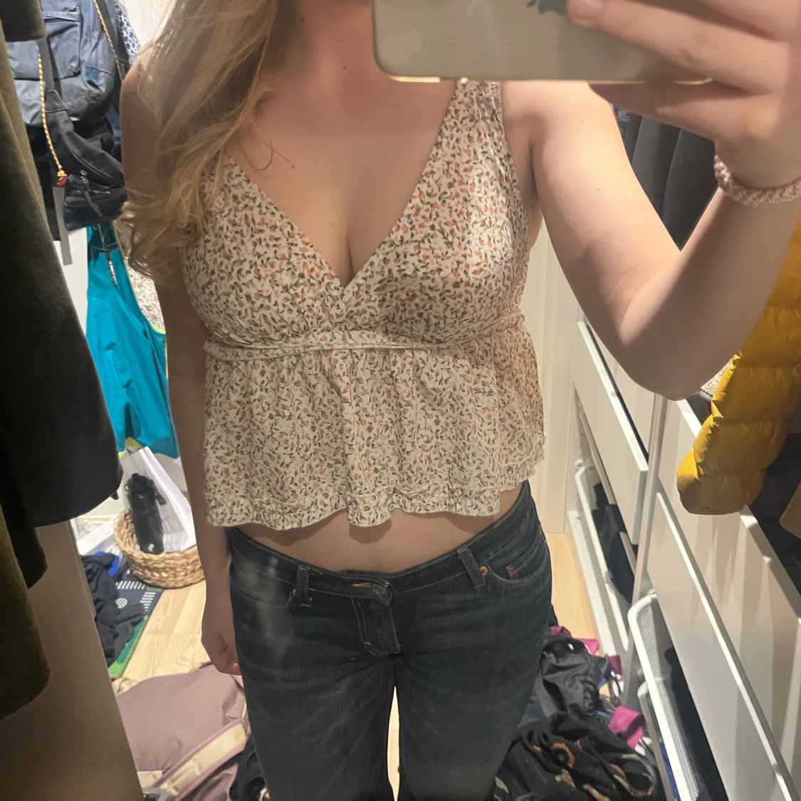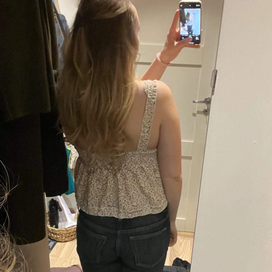 Blommig topp med volanger som är perfekt inför sommaren❤️ Sitter som S-XS! Mycket fint skick och nästan aldrig använt den🥰