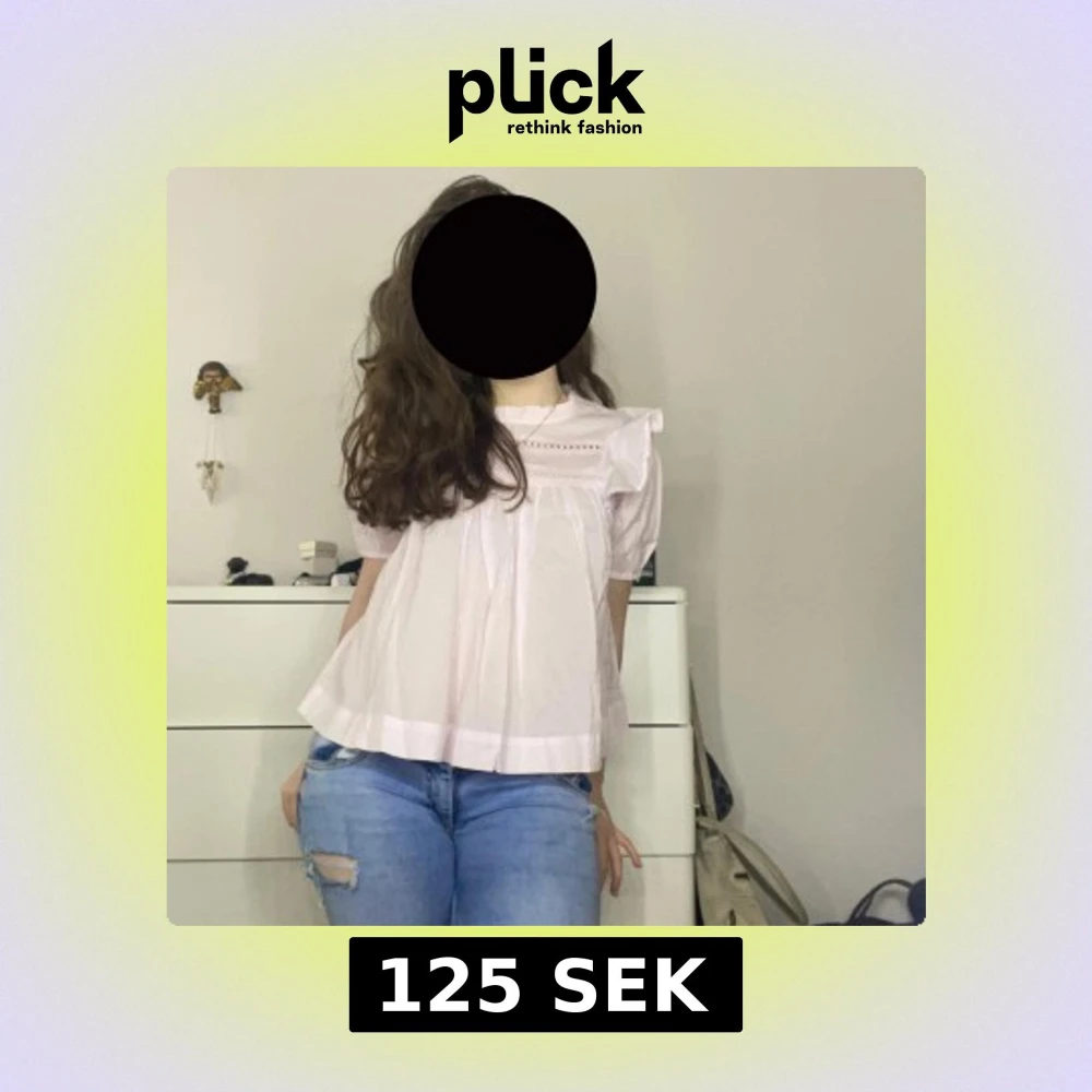 Supersöt ljusrosa blus med volangdetaljer på axlarna och fina spetsinslag framtill. Blusen har korta puffärmar och en lös, luftig passform. ❤️❤️