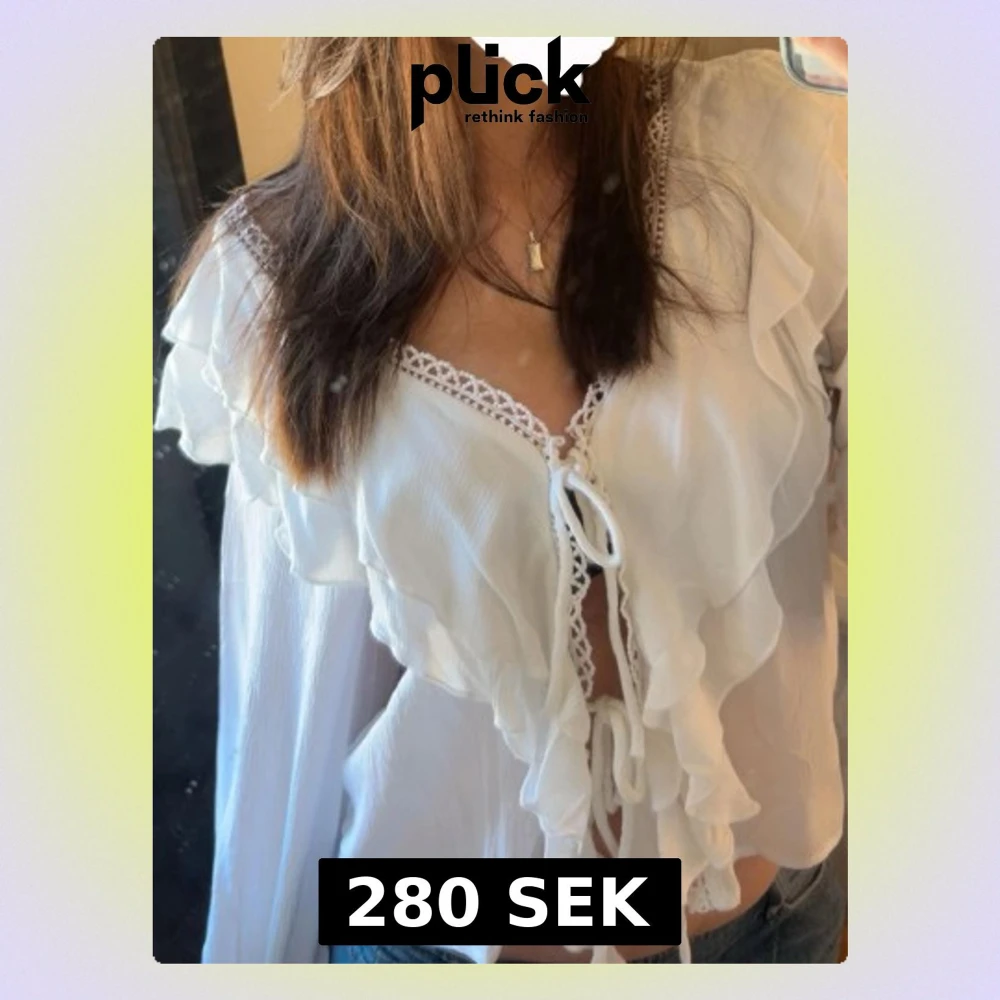 jättefin somrig vit blus, verkligen min favoritblus men måste tyvärr sälja eftersom att den är för liten!! mer bilder kan fås om önskat💞köpt på gina för 450🙏🏻
