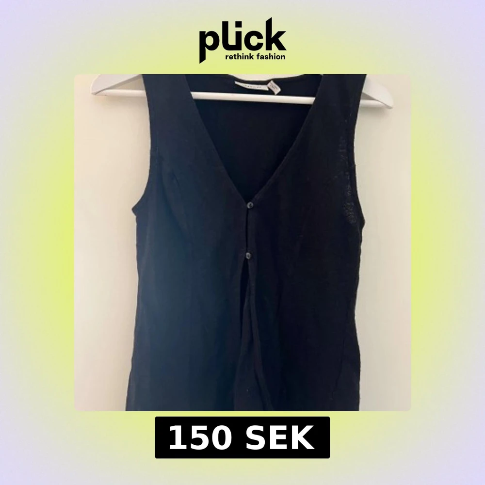 Snygg svart väst från Weekday med v-ringad hals och två knappar framtill. Västen har en stilren och enkel design. Materialet är mjukt och känns bekvämt mot huden. Passformen är normal och modellen är ärmlös.