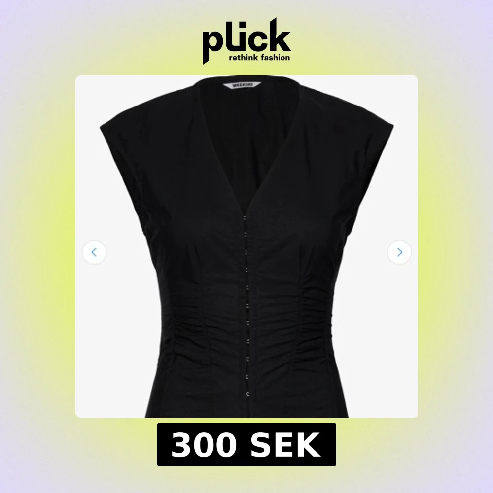 Snygg svart topp från Weekday med v-ringning och markerad midja. . Perfekt för dig som gillar stilrena och moderna plagg. Endast använd en gång. NYPRIS = 489
