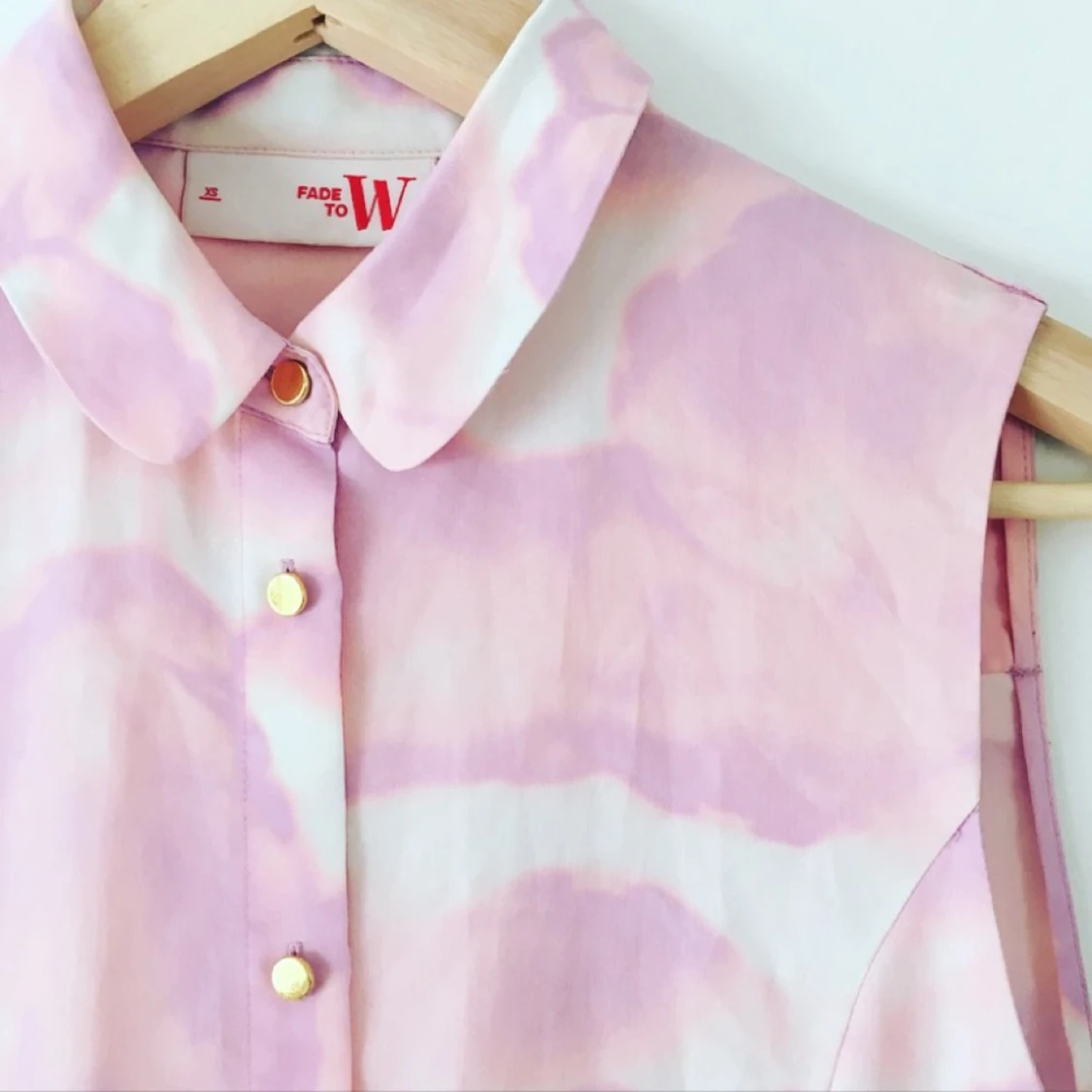 Jättefin kortärmad skjorta från Weekday, världens mjukaste material. Fina detaljer med rundad krage, guldknappar och kortare i bak och längre i fram. Knappt använd. Finns ej i butik längre.
