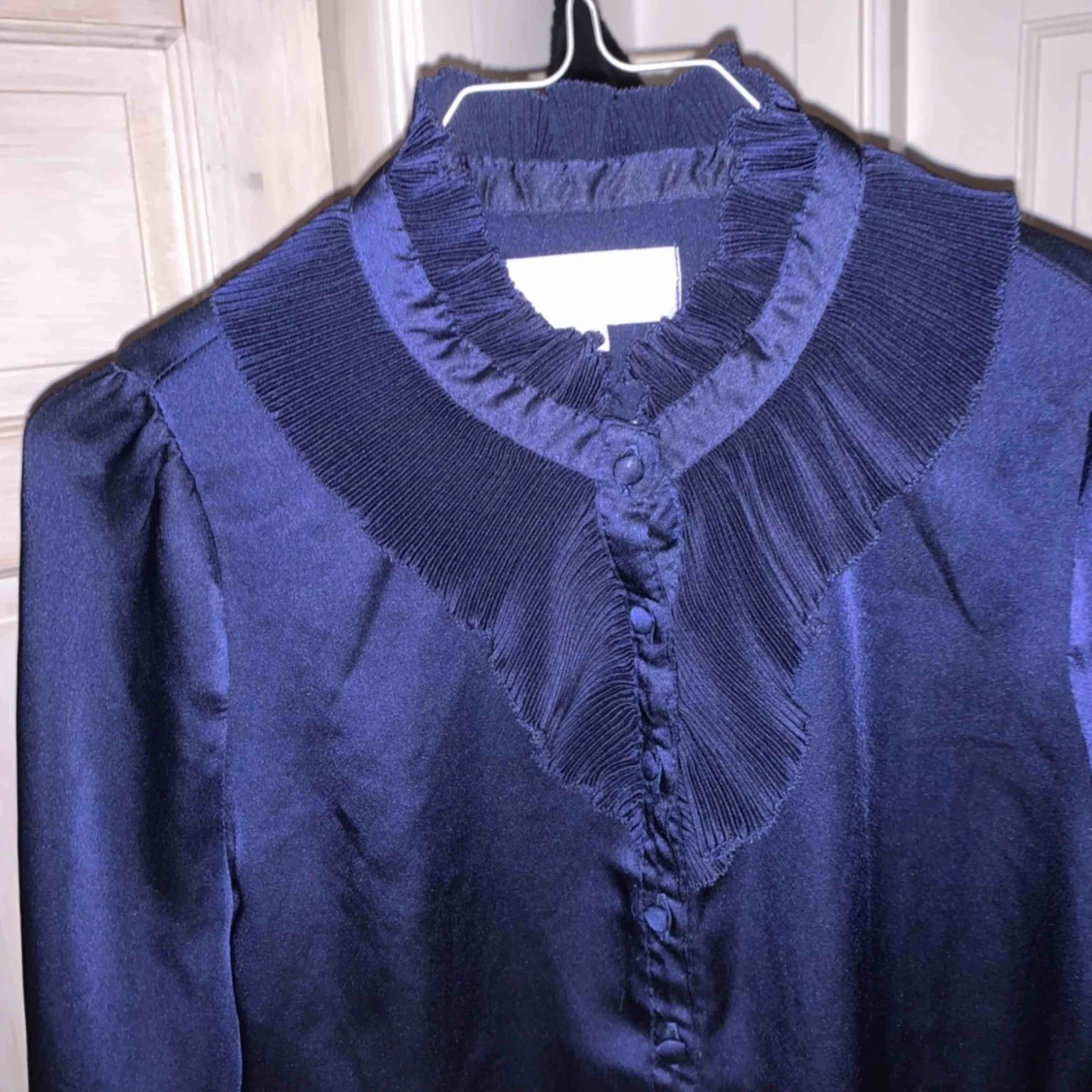 Fin mörkblå blus, kan även användas som S. Kan skicka fler bilder vid förfrågan. Köparen står för frakt😊