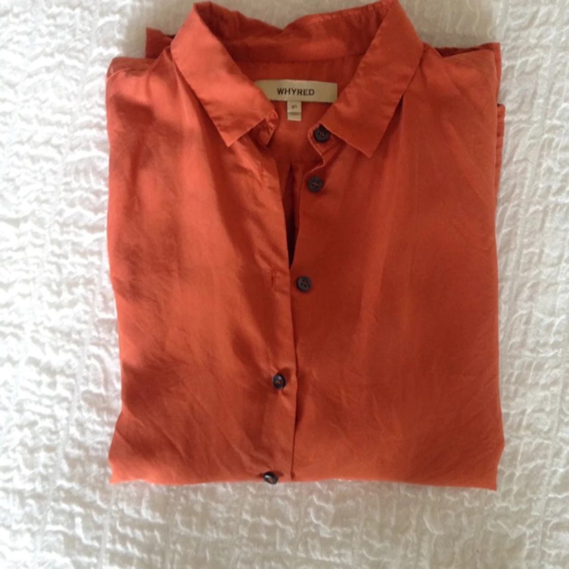 Skjorta/blus i siden från Whyred, går något åt det roströda hållet.