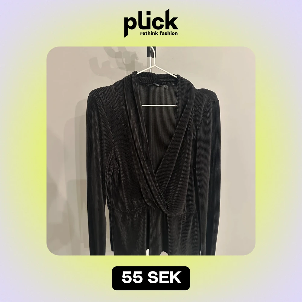 Snygg svart omlottopp från Soaked in Luxury i ett ribbat material. Perfekt för både vardag och fest! Den har långa ärmar och en elegant omlottdesign som ger en stilren look. Passar bra till både jeans och kjol. 🖤