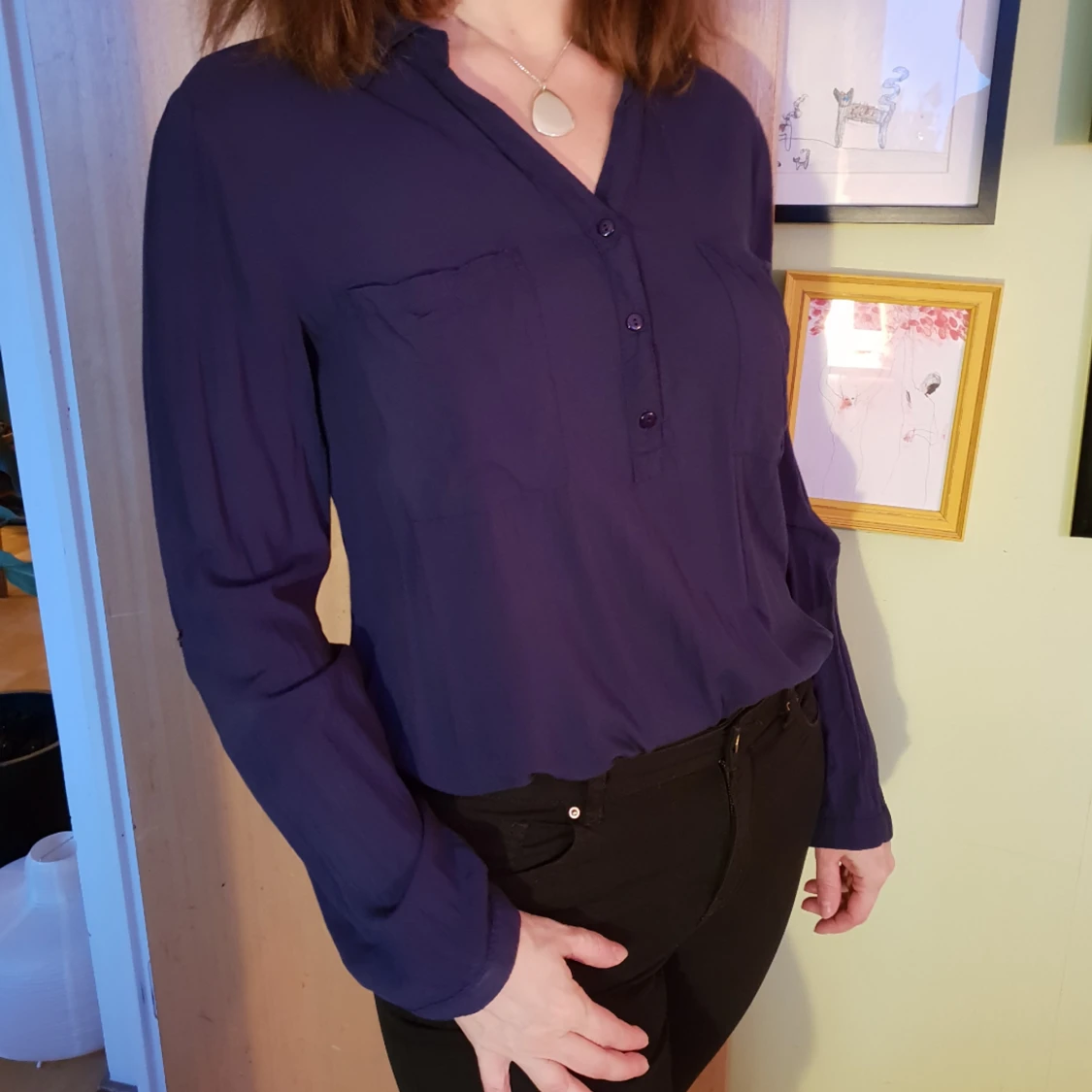 En mörkblå blus i skönt material. Går att hämtas i Gamla Stan eller skickas via post.
