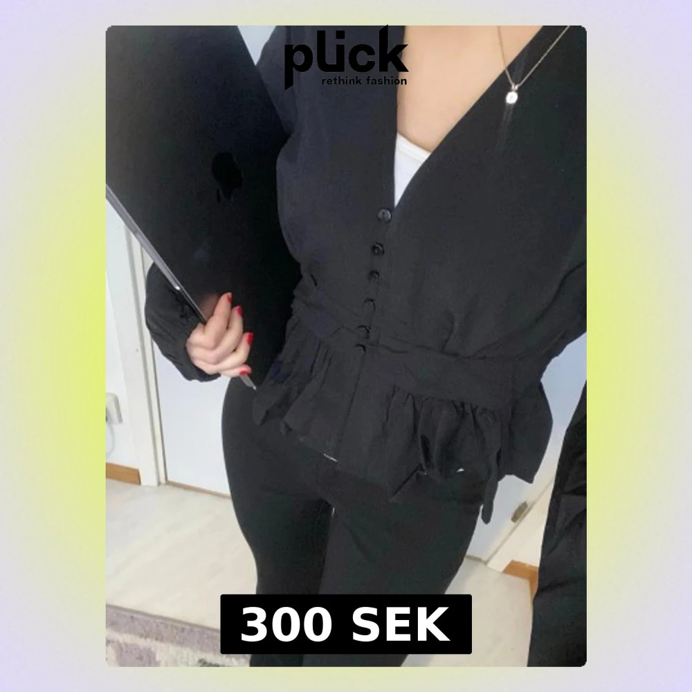 Svart blus med volang och knappar