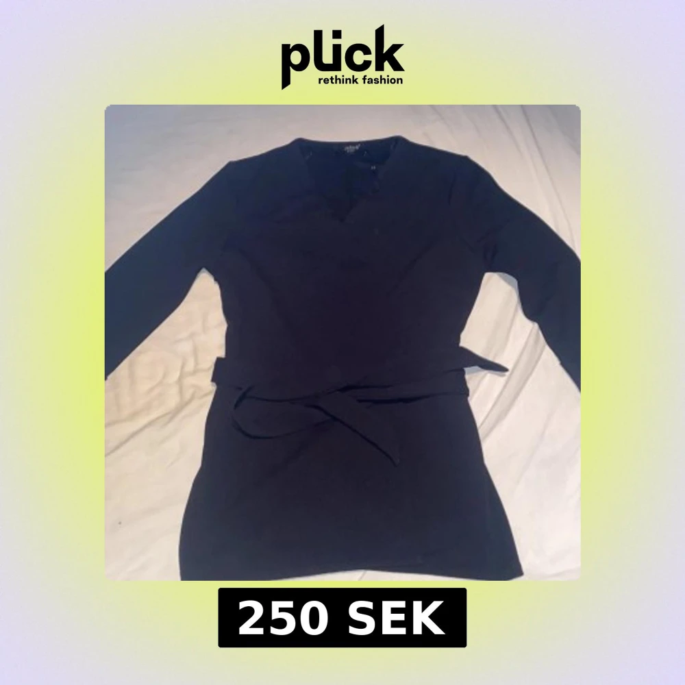 En stilren svart omlottklänning från Sisters Point med lång ärm och knytbälte i midjan. Klänningen har v-ringning och en enkel, elegant design som passar perfekt när du vill känna dig extra snygg. Perfekt för dig som gillar klassiska plagg med en twist.