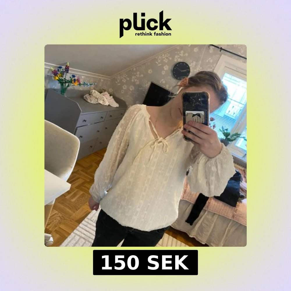 En jätte fin vit blus med knyt där framme. Jätte fint mönster. Perfekt till sommaren