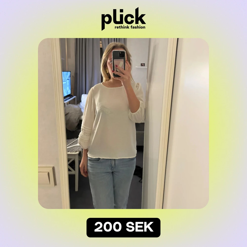 En super fin vit blus med detaljer på armarna, tröjan är i trekvart.🎀