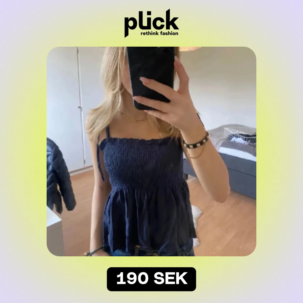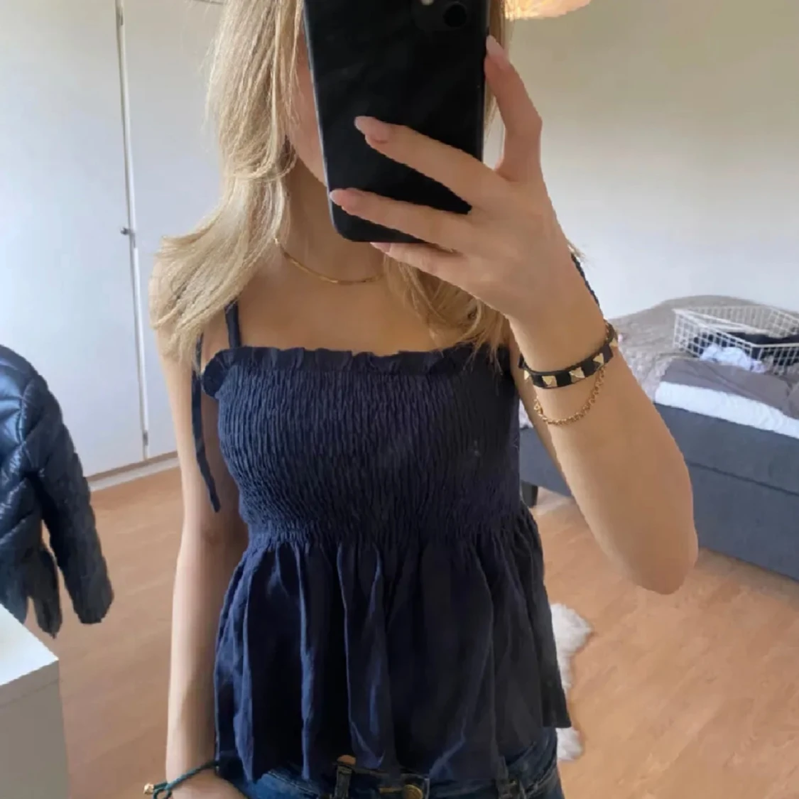 Jättefin mörkblå volangtopp helt i nyskick köppt i Spanien i Storlek xs (passar s/m också) 💓 inga defekter eller tecken på användning! Jätte fin nu till sommaren!☺️