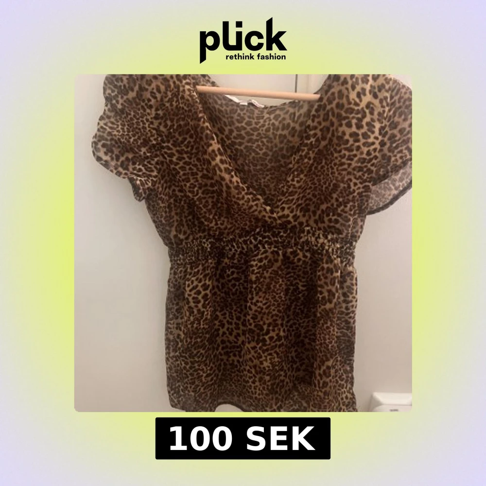 Säljer en söt blus från Tally Weijl i transparent, lätt material med leopardmönster. Modellen har v-ringning, korta ärmar och smockad midja som ger en snygg siluett. Perfekt för dig som vill sticka ut med ett djurmönstrat plagg.
