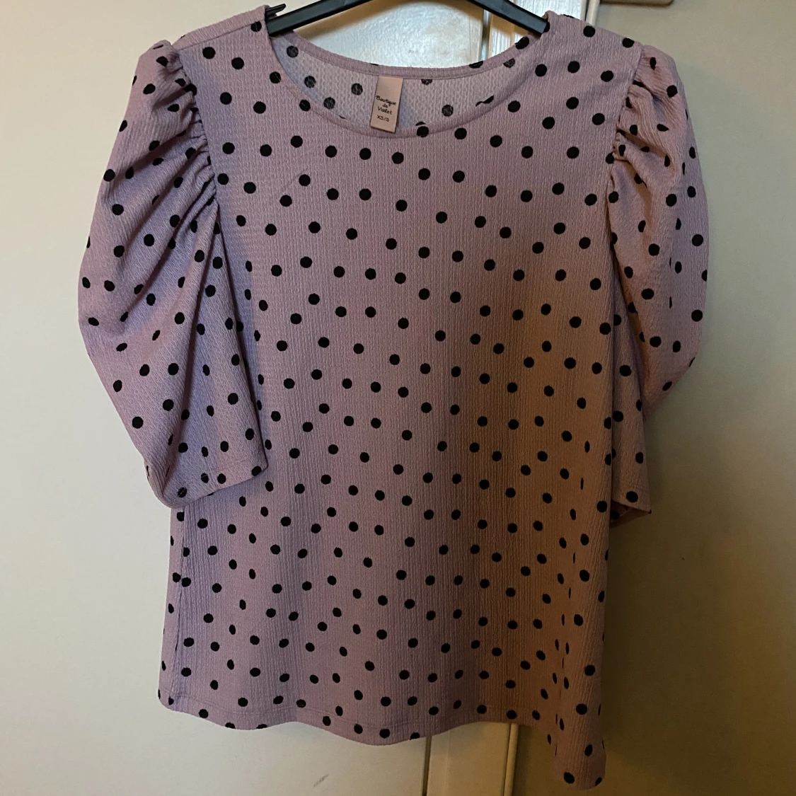 Lila blus med svarta prickar Storlek xs/s Som ny