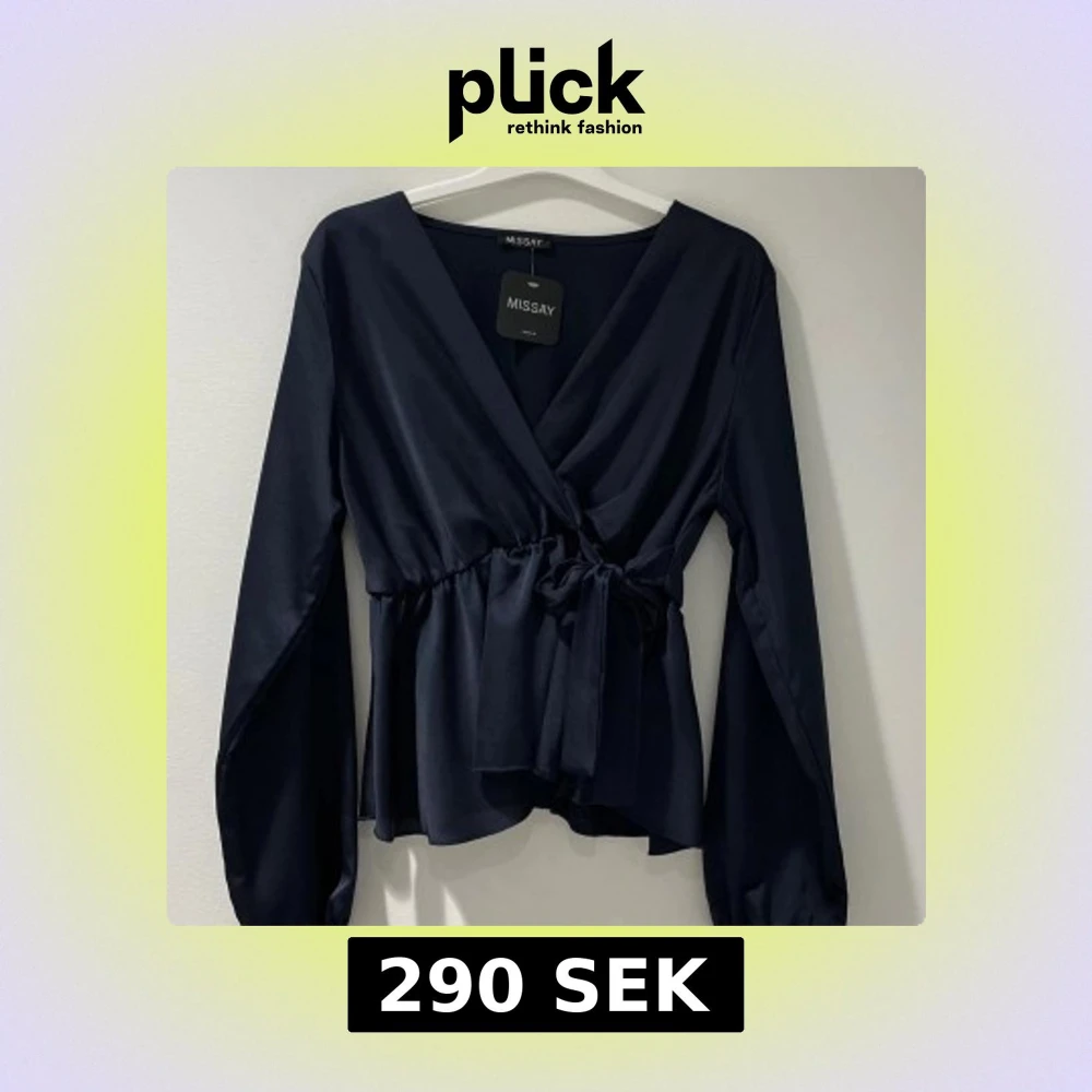 Marinblå knytblus i från missat. Köpte i somras o har använt ett par gånger, men fortfarande väldigt bra skick. Passar strl xs-S